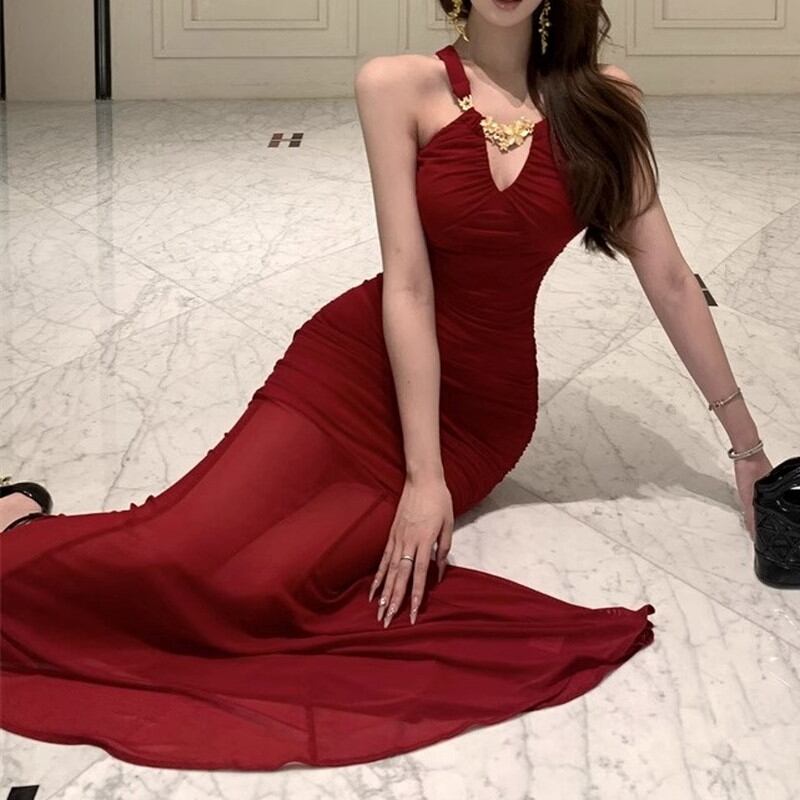 バックレスデザインが美しい、マーメイドシルエットのタイトスカート。