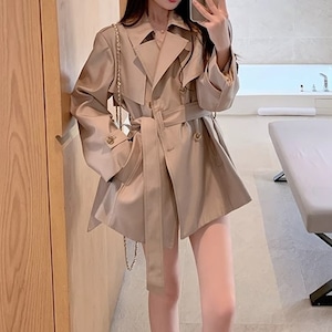 Aラインシルエットが美しい、ダブルボタンのロングスリーブコートです。ノーカーラーデザインが上品さを際立たせ、ウエストベルトでスタイルアップも叶います。デイリーユースからオフィススタイルまで、幅広いシーンで活躍します。