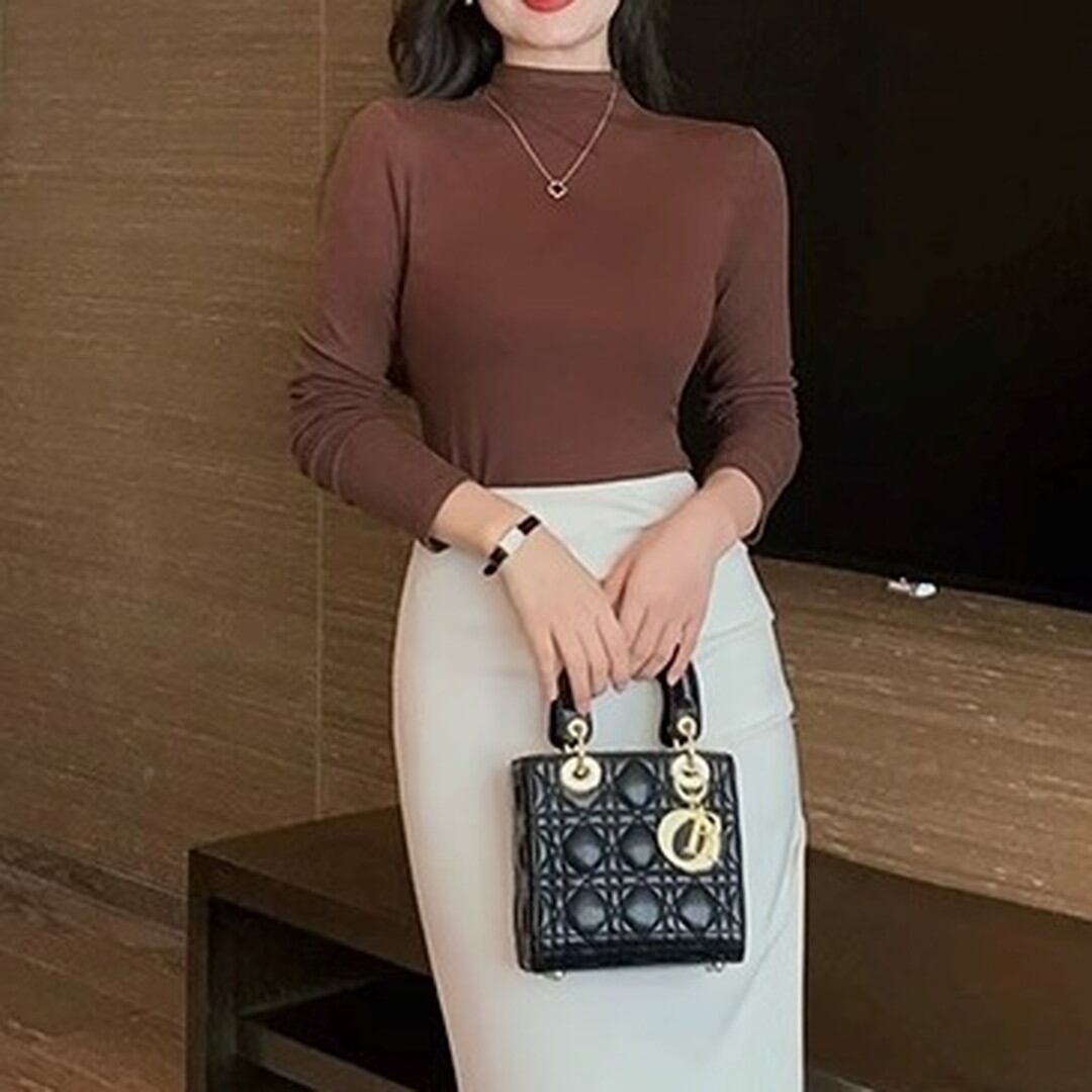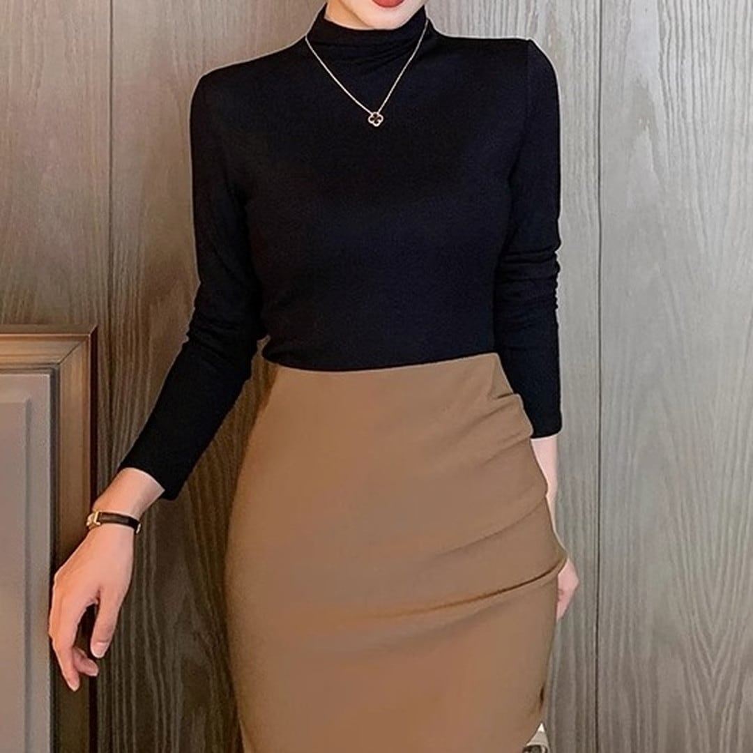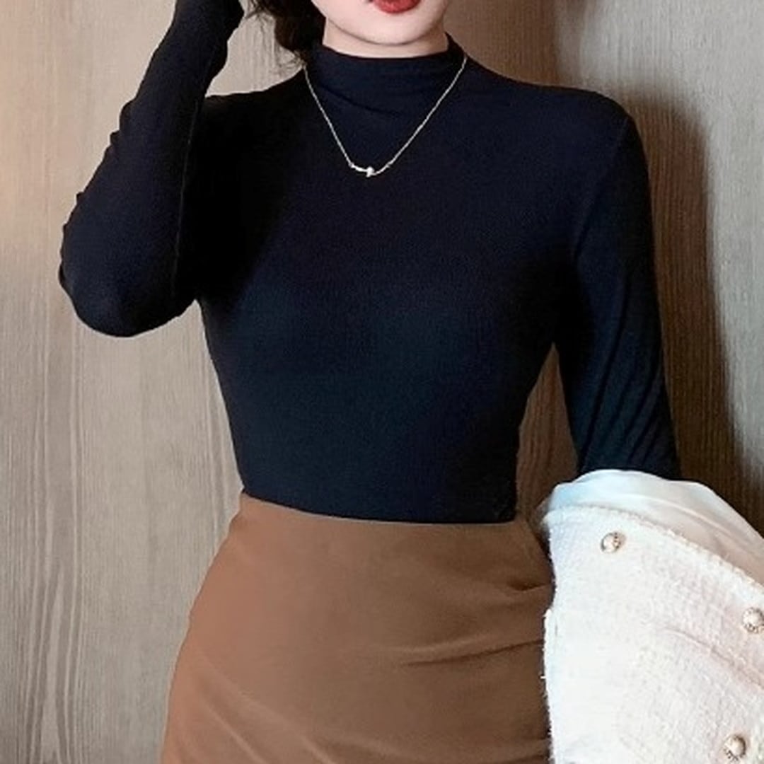 半袖ハーフタートルネックトップス。上品で洗練された印象を与え、オフィスシーンからデイリーユースまで幅広い場面で活躍します。シンプルなデザインなので、アクセサリーや小物でアレンジも楽しめます。