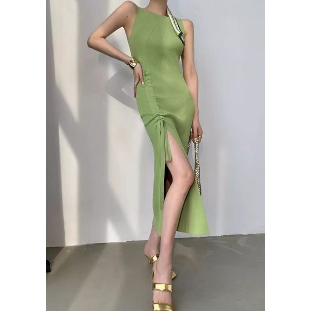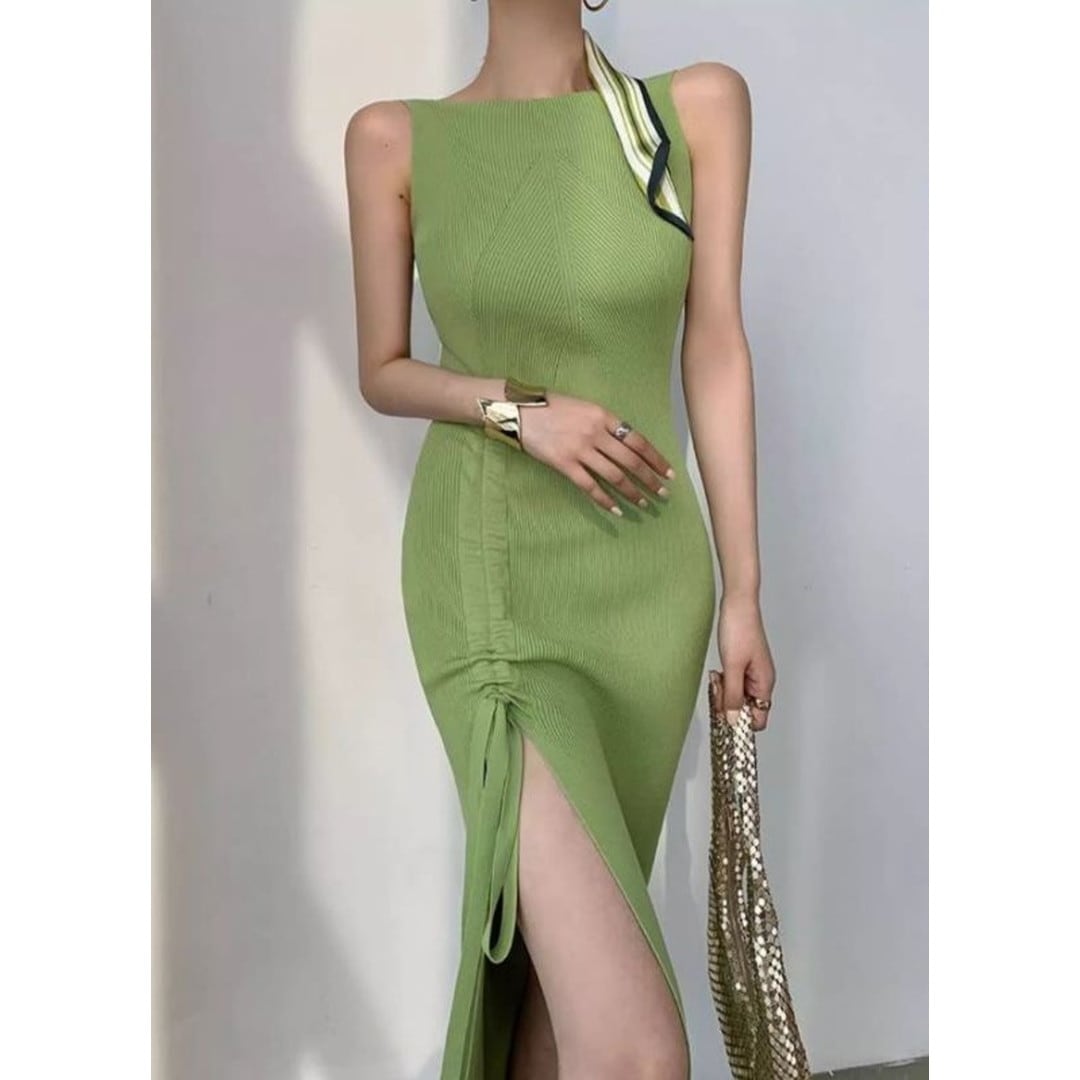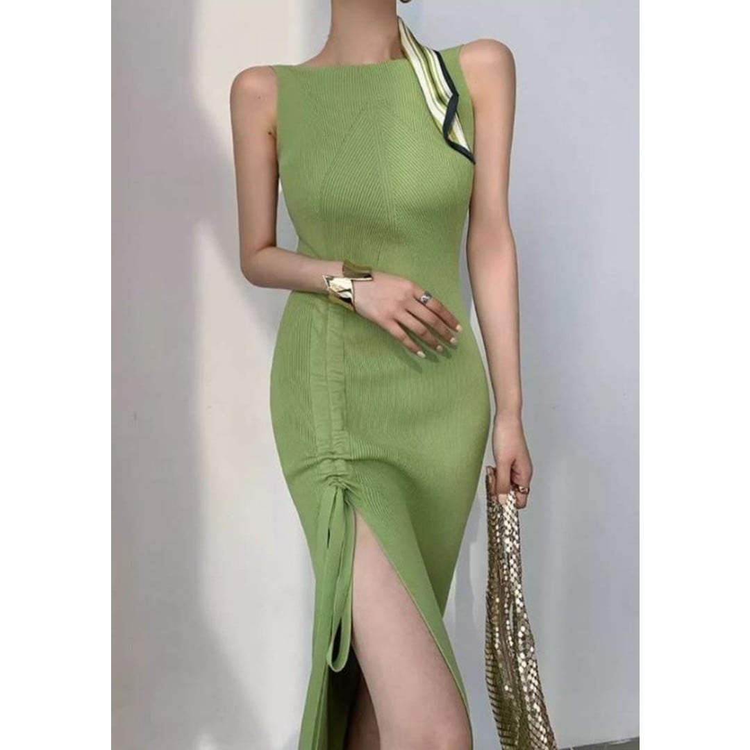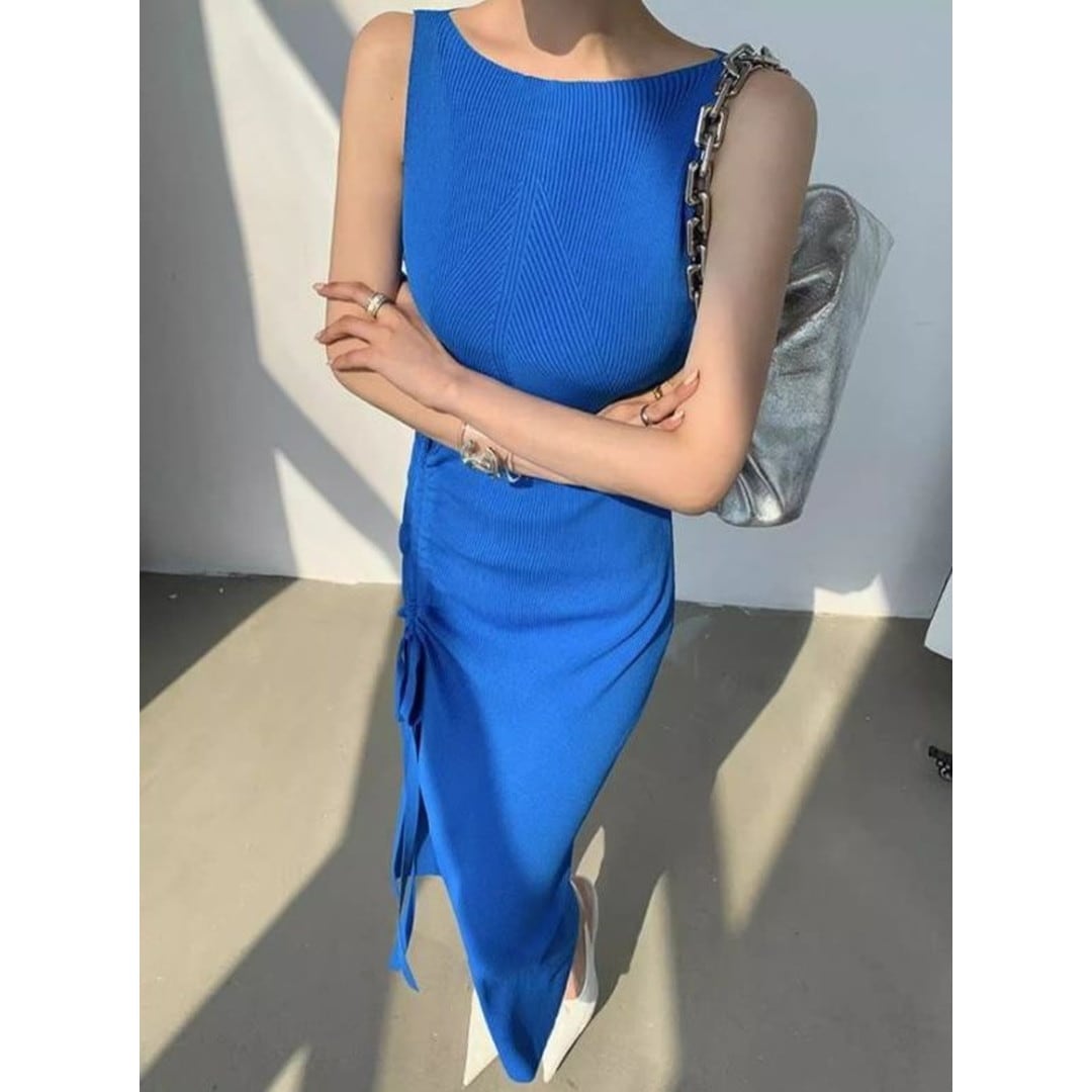 洗練されたシルエットと、さりげない肌見せが魅力のニットスカート。サイドのスリットとドローストリングデザインが、女性らしい動きを演出します。デイリーユースはもちろん、ちょっとしたお出かけやパーティーシーンにも活躍する、着回し力の高い一品です。