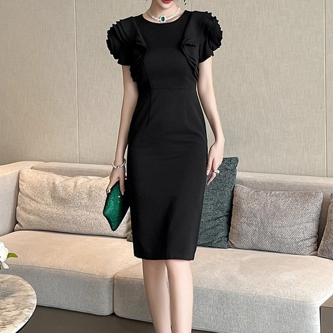 タイトなシルエットで女性らしいボディラインを美しく演出。