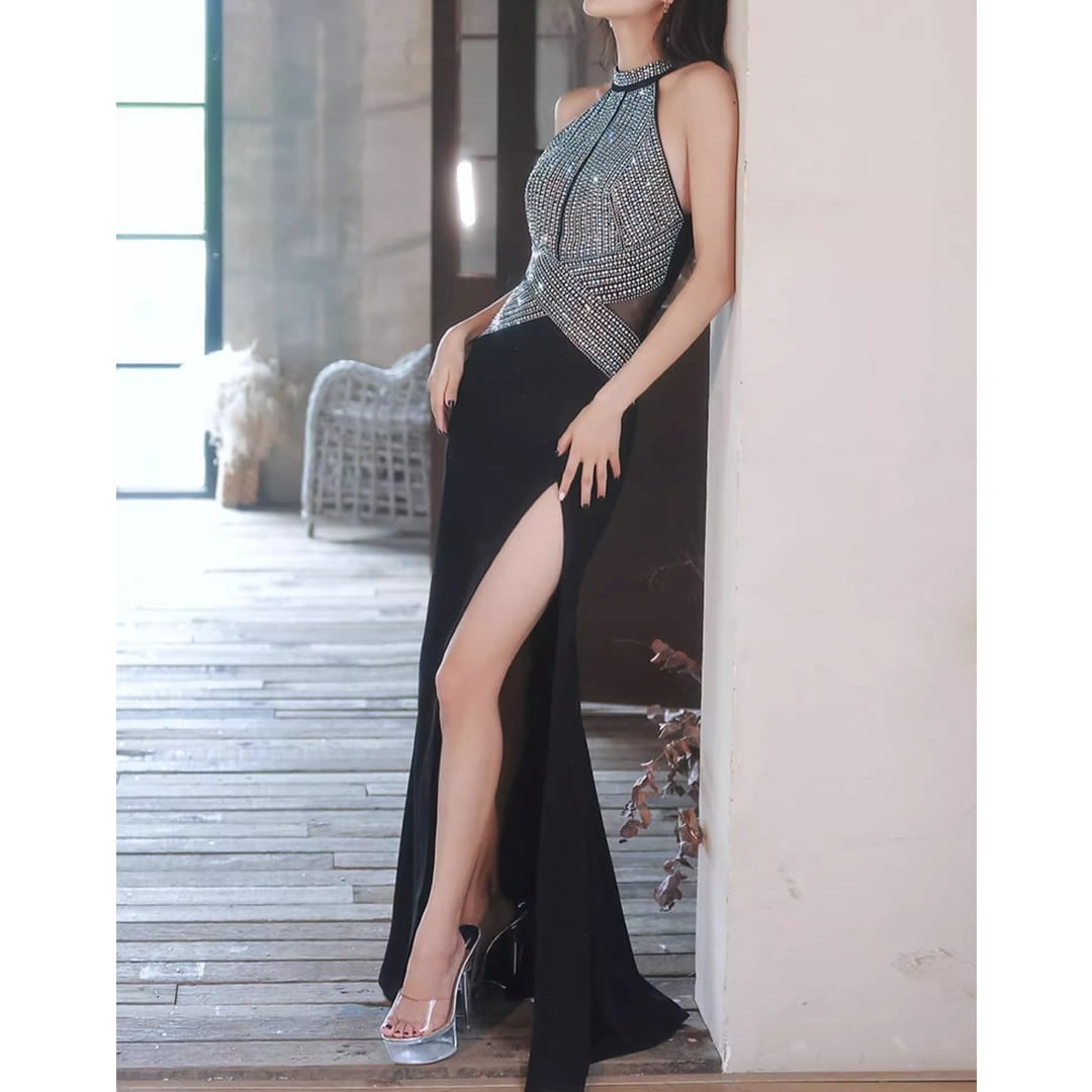 ロング丈のスリットとハイネックが洗練されたシルエットを演出するドレス。ボディラインに沿うマーメイドラインが、女性らしい魅力を最大限に引き立てます。胸元にあしらわれた装飾が、華やかさをプラス。パーティーや特別な日に、自信に満ちたスタイルを叶えてくれる一着です。ロングスカートのスリットが、歩くたびに美しい脚のラインを覗かせ、上品なセクシーさを演出します。