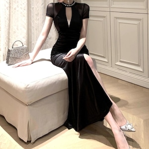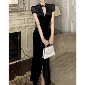 大胆なスリットが、女性らしさとセクシーさを演出。