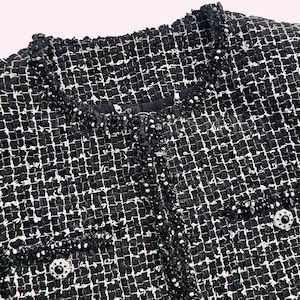 ロング丈のフレアスカートは、上品なツイード素材と繊細なレースの組み合わせが魅力です。トップスを選ばず、様々なシーンで活躍します。パーティーや特別な日に、洗練されたスタイルを演出したい方におすすめです。ウエストから裾にかけて広がる美しいシルエットは、女性らしさを際立たせます。