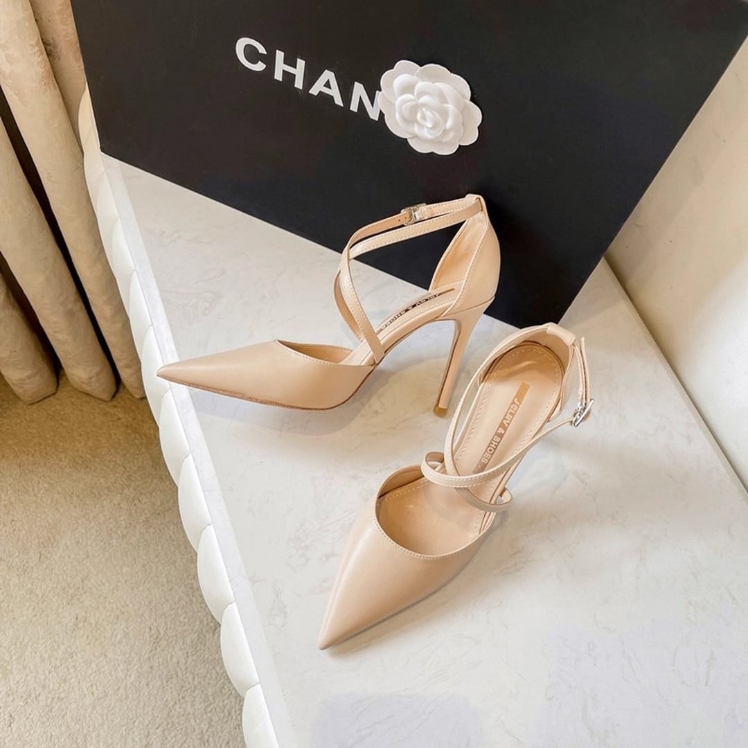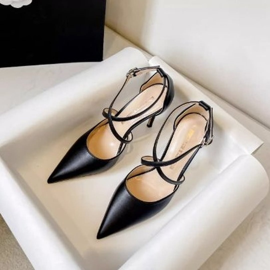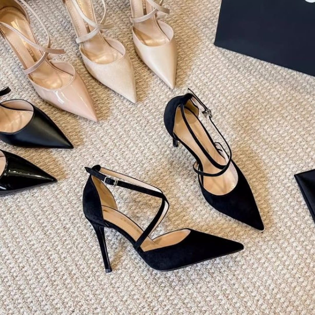 繊細なストラップが足首を美しく演出する、女性らしいデザインです。