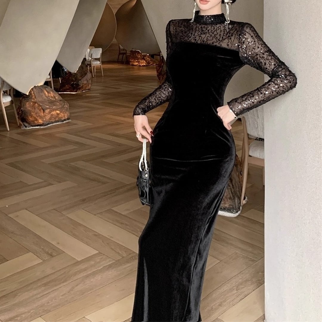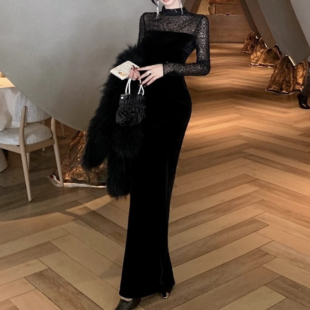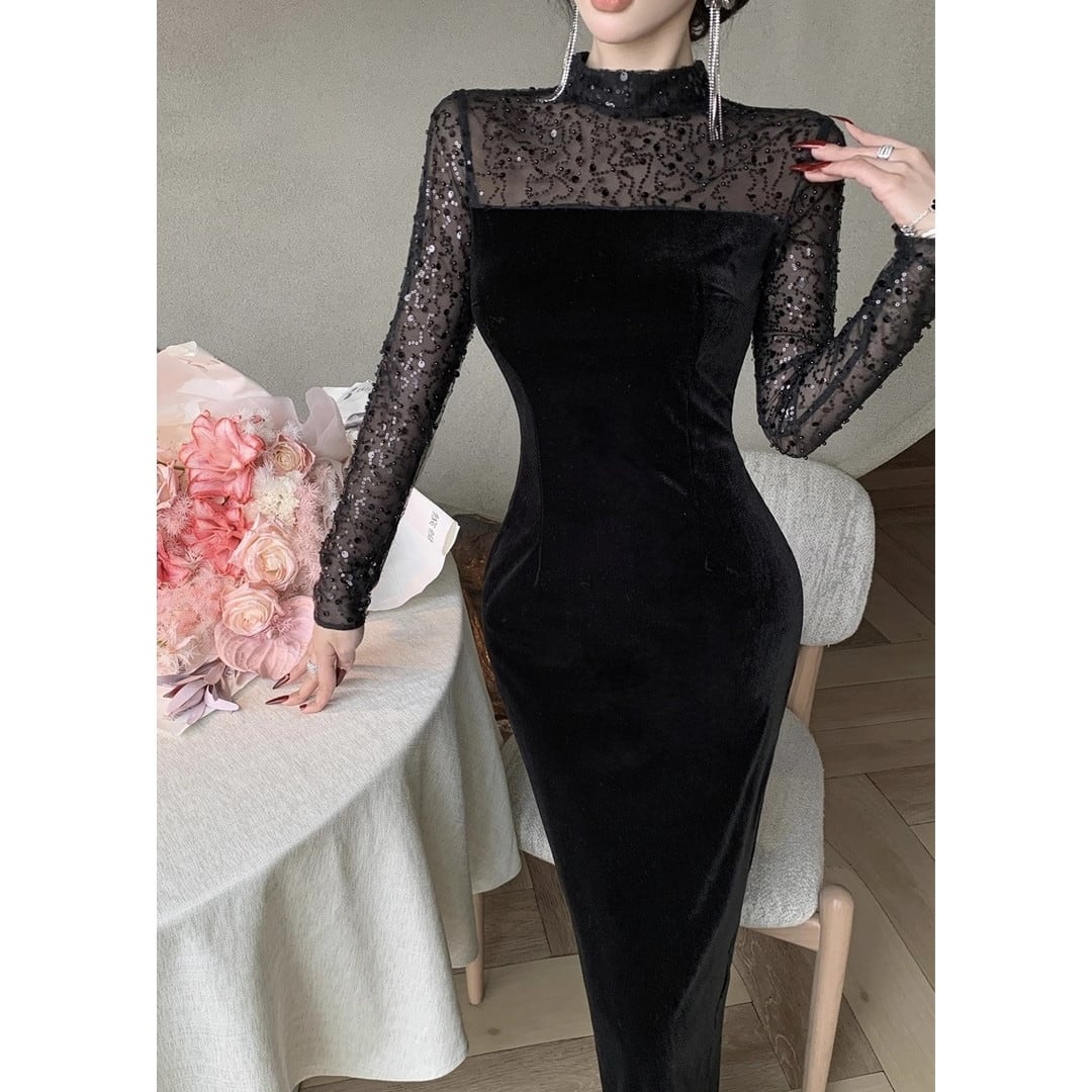 タイトなシルエットが、ボディラインを美しく魅せ、特別な日の装いを格上げします。