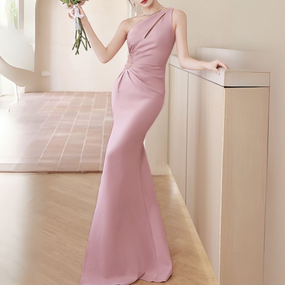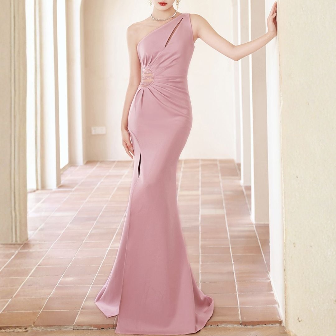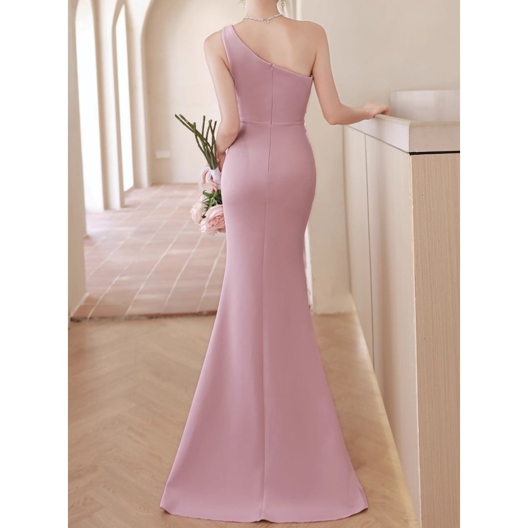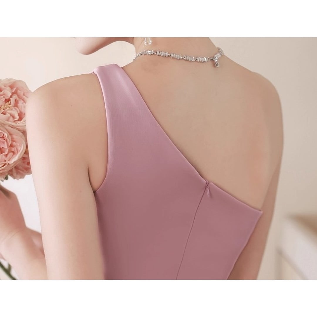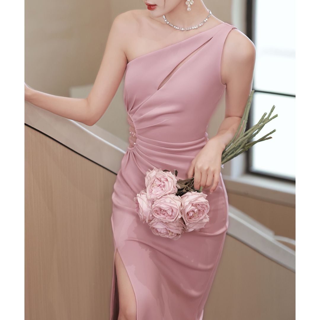 ワンショルダーデザインとアシンメトリーなシルエットが洗練された印象を与える、ボディコンシャスなスカートです。ウエストラインを美しく強調するデザインで、女性らしいシルエットを演出します。パーティーや特別なイベントに最適な、華やかな装いを叶えてくれます。