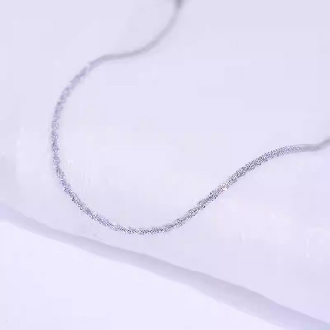 S925,繊細な輝きを放つショートネックレス。首元に沿うように、上品な印象を与えます。普段使いはもちろん、パーティーシーンなど華やかな場面にも最適です。シンプルなデザインなので、気分でペンダントトップと重ね付けも楽しめます。