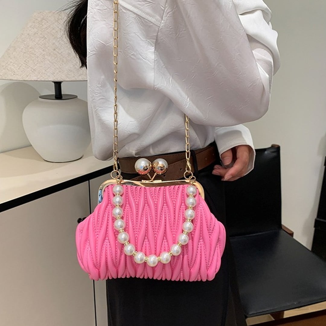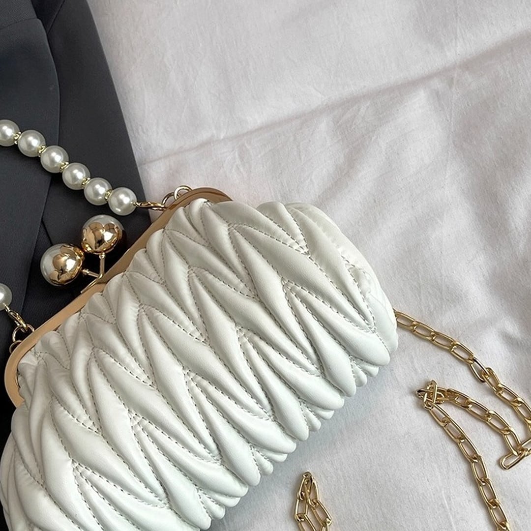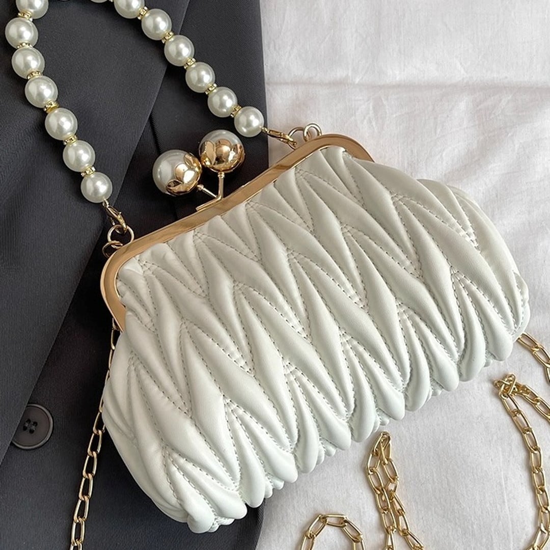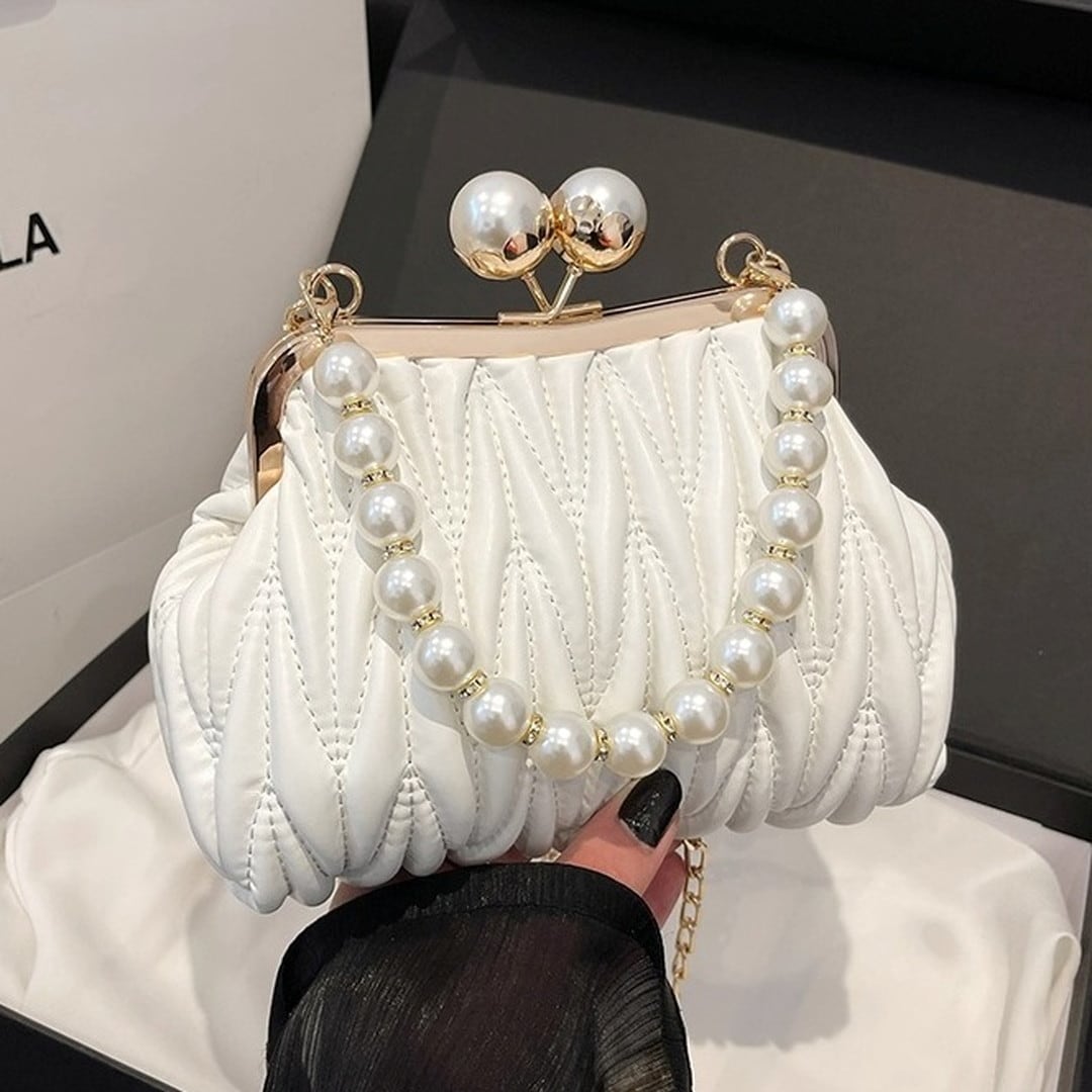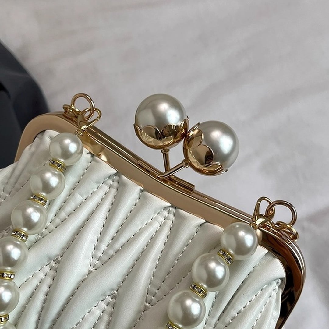 Quilted Clasp Pearl Handle Bag(4color) V193