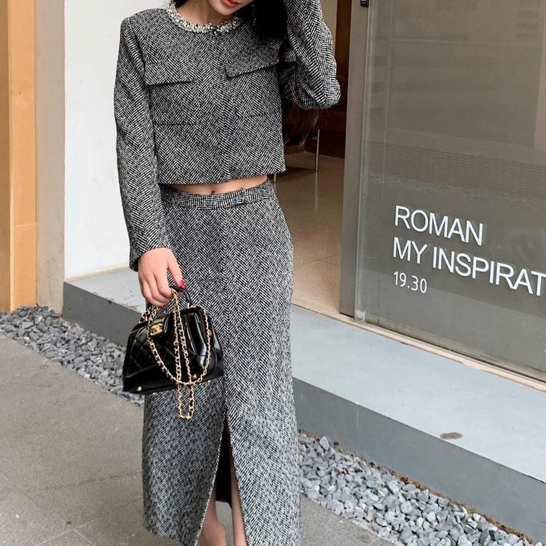 ノーカラーのデザインが特徴的なクロップドジャケット。コンパクトな丈感は、スタイルアップ効果も期待できます。フロントにはパッチポケットが配置され、さりげないアクセントに。普段使いはもちろん、少しフォーマルな場面にもおすすめです。