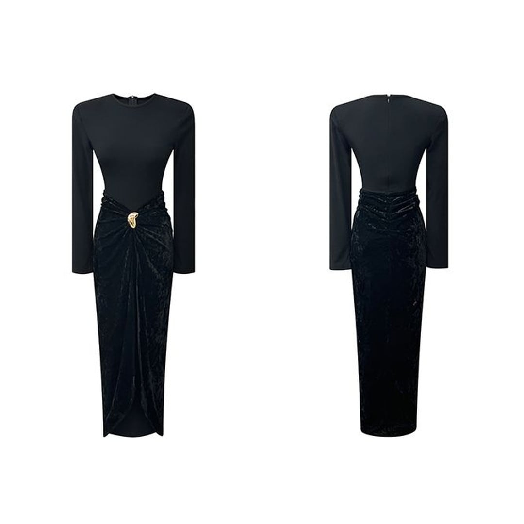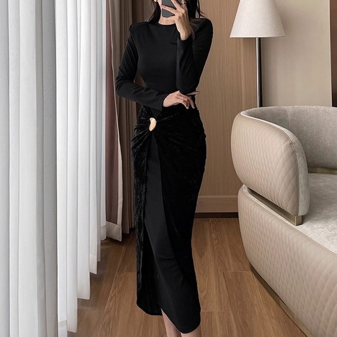 Drape midi long-sleeve dress(2color) V218