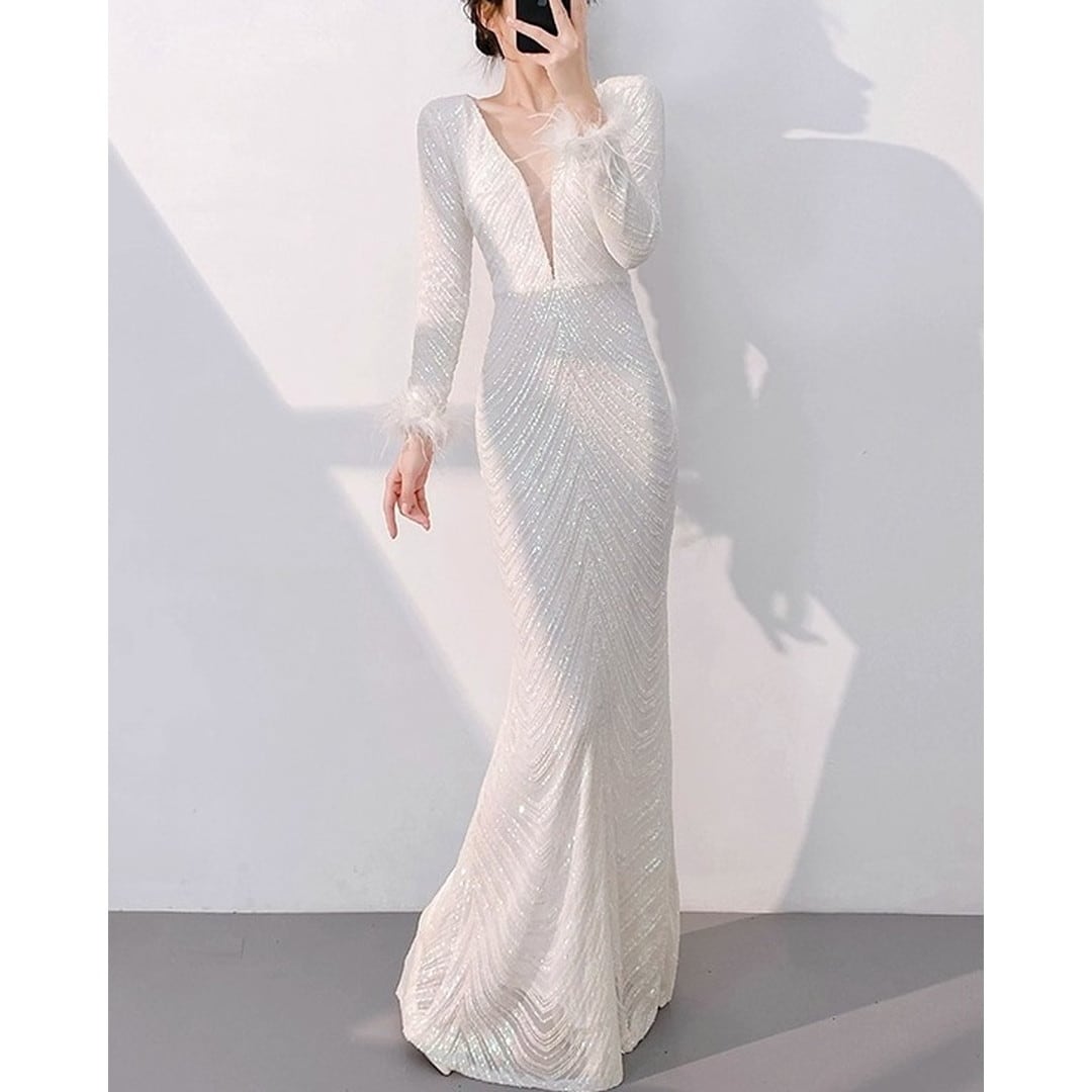 長袖デザインで、パーティやイベントなど、特別な日に最適です。