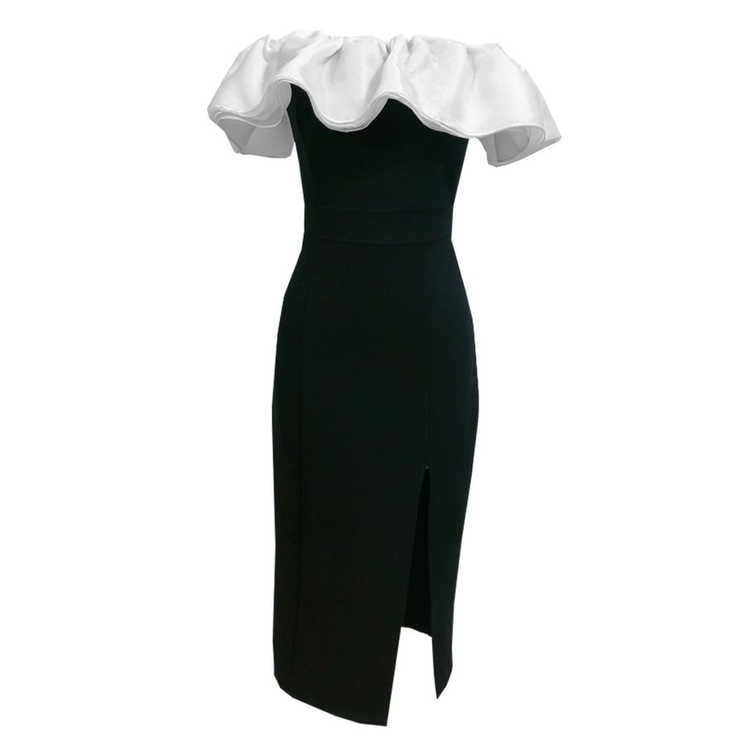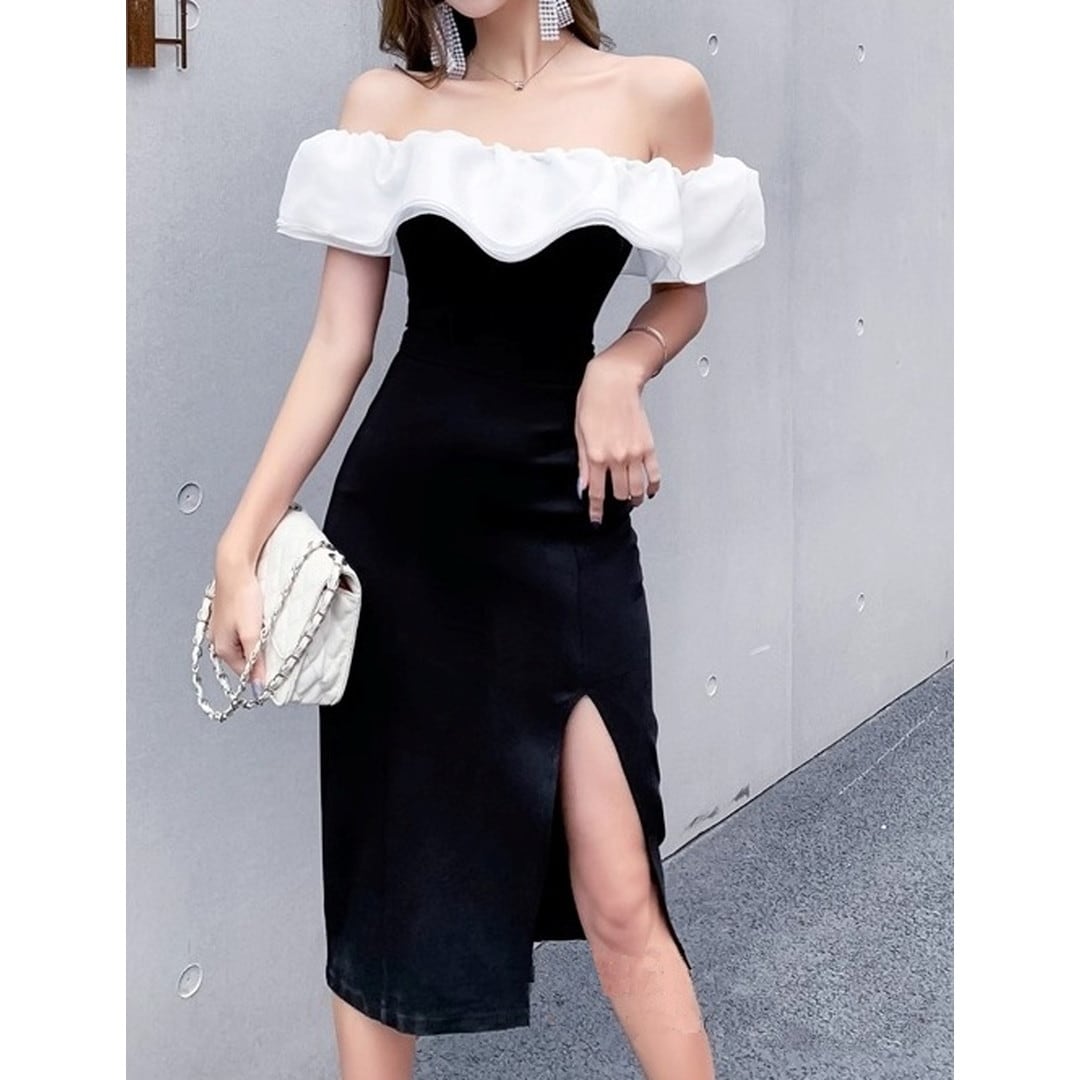 Off-shoulder slit midi dress V237