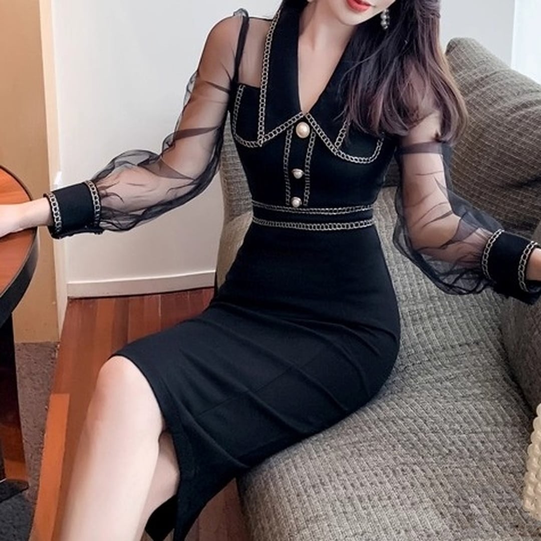 長袖のシースルー素材が、さりげない抜け感をプラス。