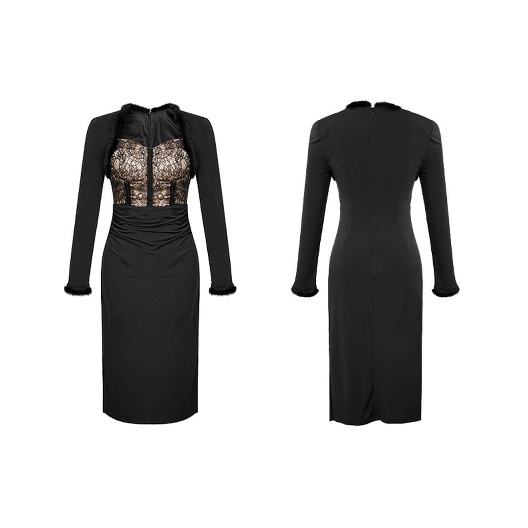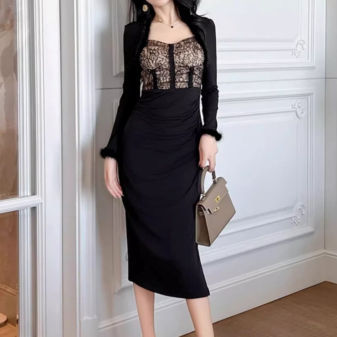 フロントドレープが上品な印象を与えるミディ丈の長袖ドレス。落ち着いた色合いで、様々なシーンで活躍します。ドレープが作り出す美しいシルエットが、女性らしさを引き立てます。ちょっとしたお呼ばれや、普段のお出かけにもおすすめです。