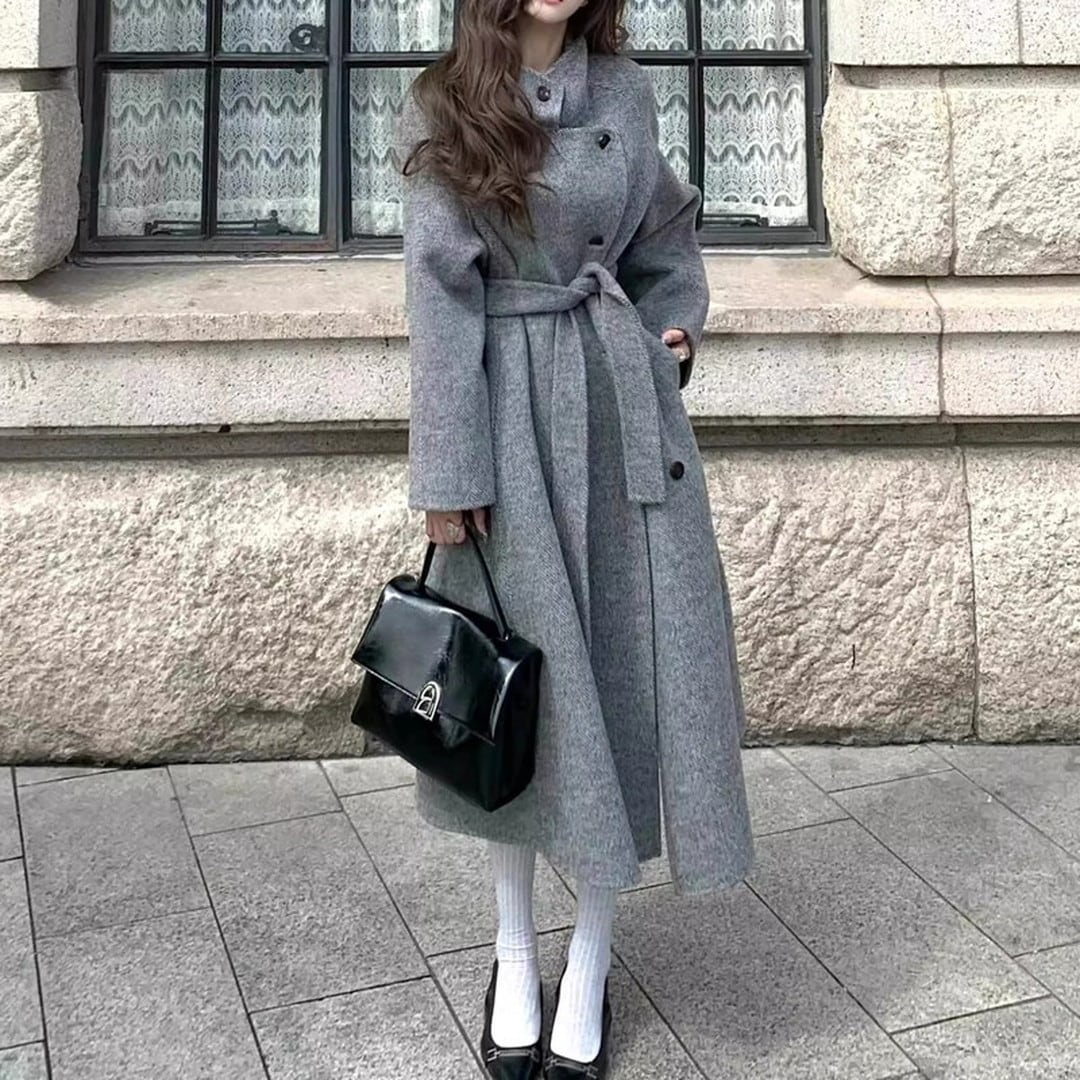 Belted Oversized Long Coat V289