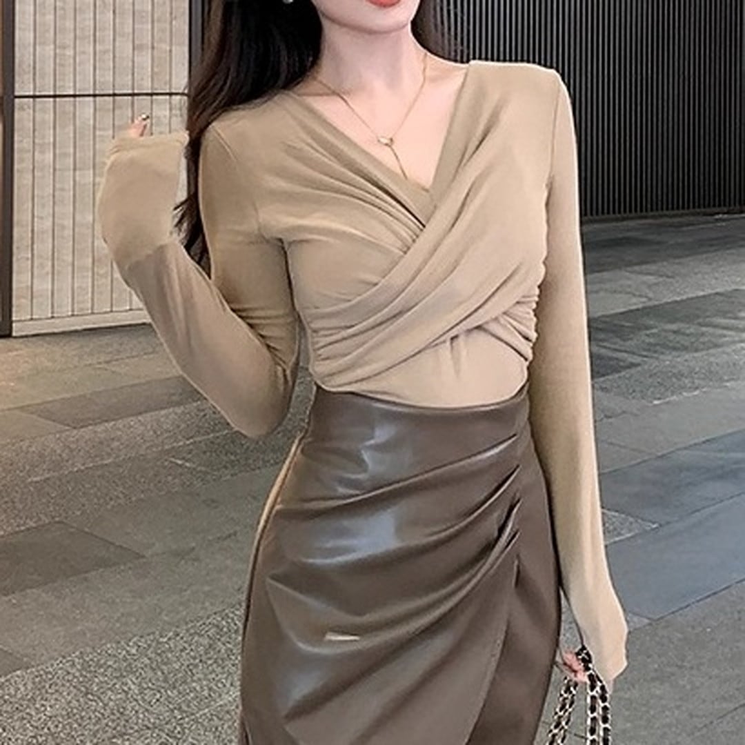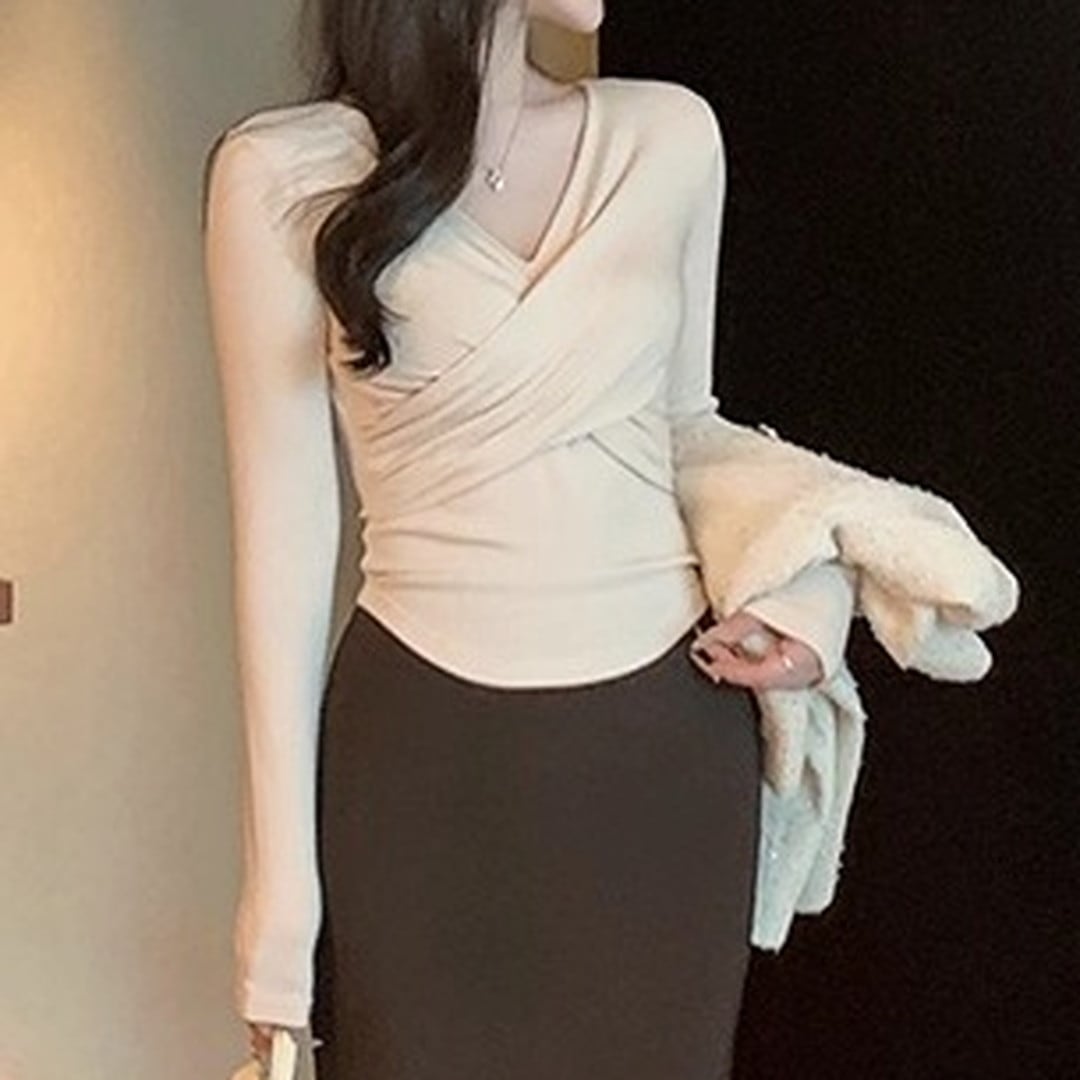 Wrap Long Sleeve Cropped Cut Sew(2color) V3025