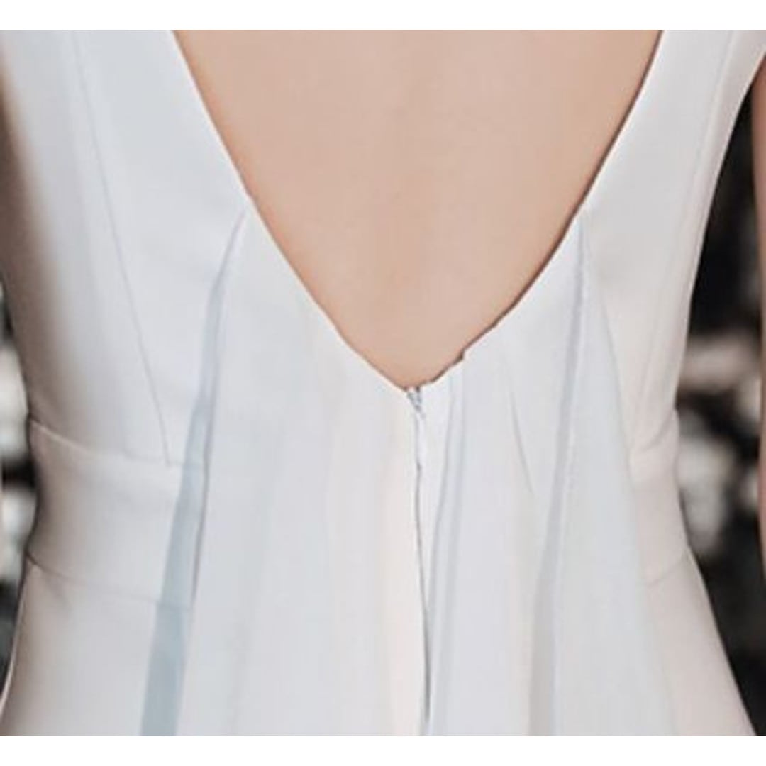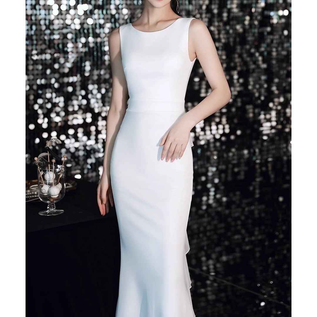 特別な日にふさわしい、洗練されたシルエットのノースリーブマキシドレス。ボディラインに沿った美しいマーメイドラインが、エレガントな雰囲気を演出します。パーティーやイベントなど、華やかなシーンで存在感を放ちます。