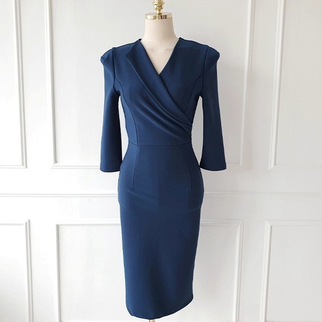 ラップスタイルのミディ丈7分袖ドレス。洗練されたデザインが魅力です。オフィスでの着用はもちろん、ちょっとしたお食事会など、様々なシーンで活躍します。上品なシルエットは、あなたの魅力を引き立て、自信を与えてくれるでしょう。