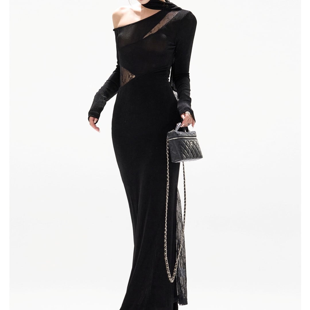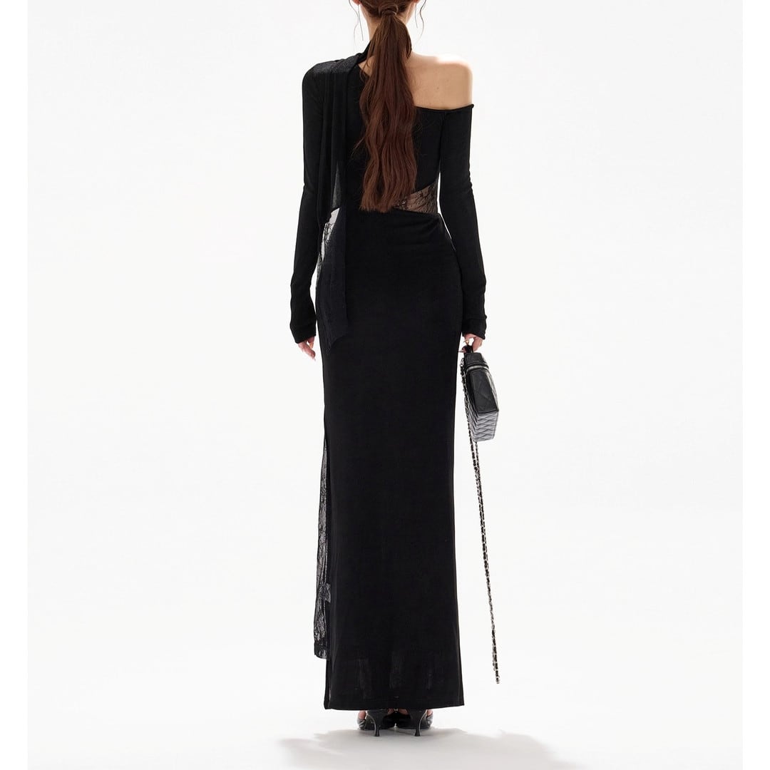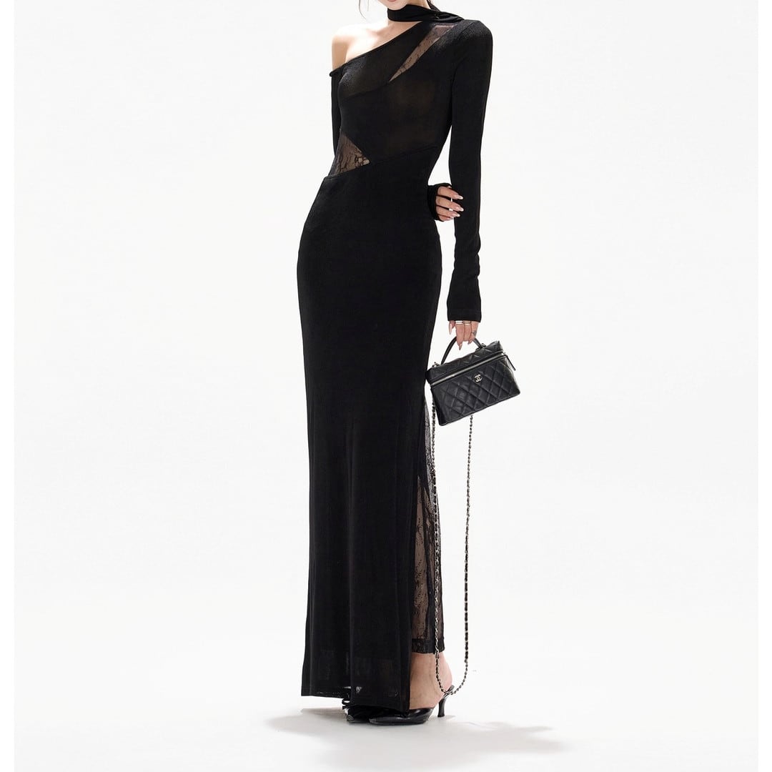Asymmetrical Long Tight Dress V3061