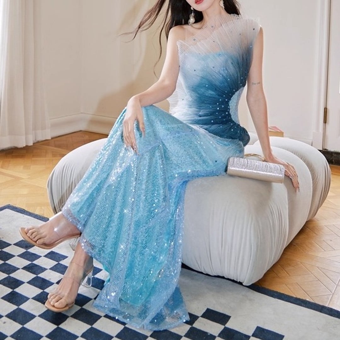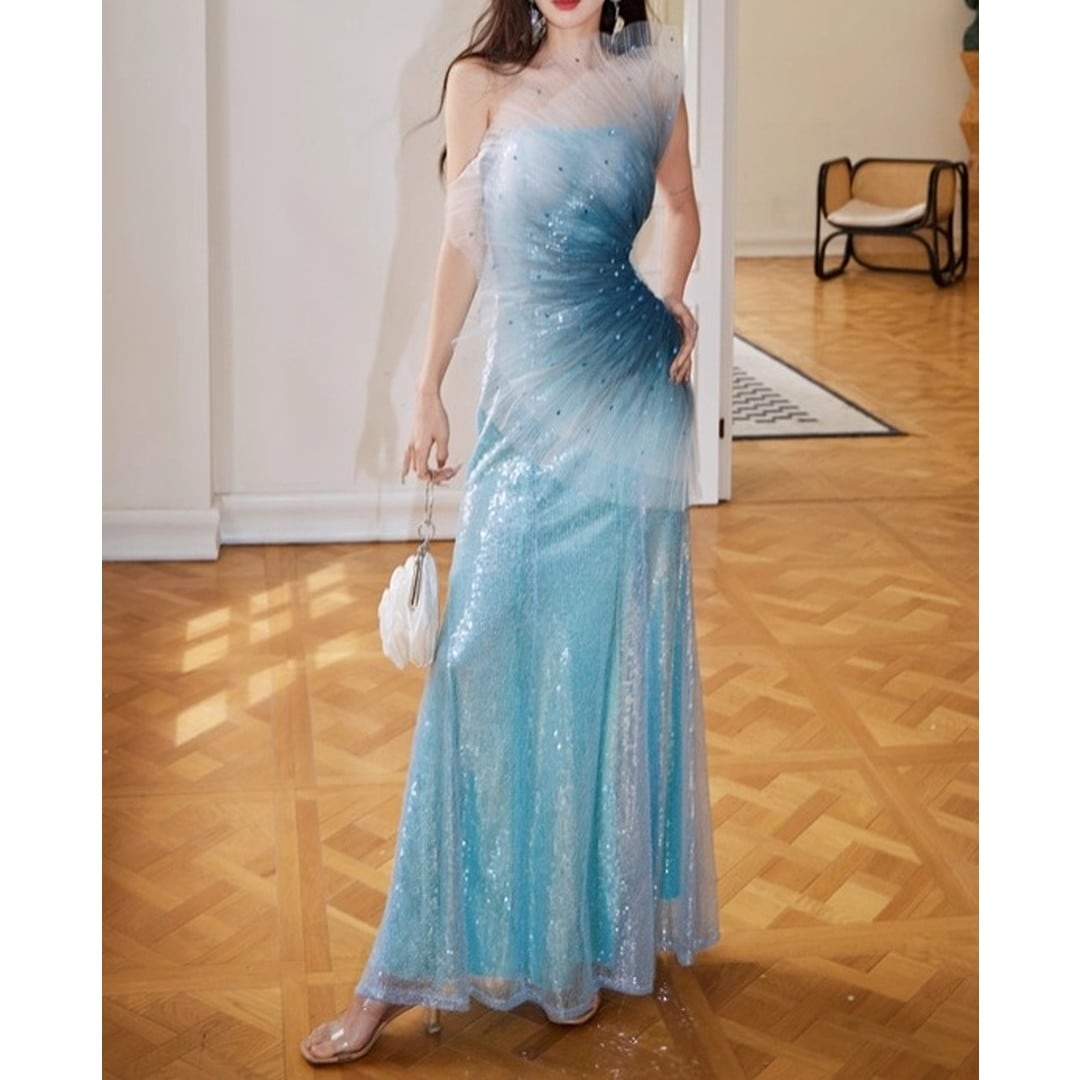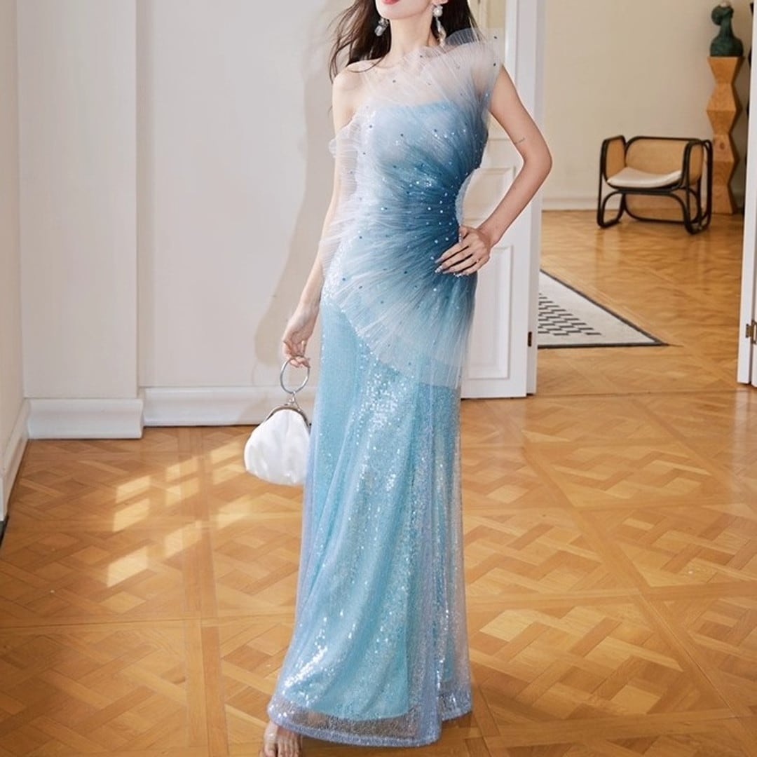 特別な夜にふさわしい、華やかな存在感を放つ一着。ワンショルダースタイルが、洗練された大人の魅力を引き出します。全体にあしらわれたスパンコールが、光を浴びるたびに美しく輝き、周囲の視線を惹きつけ、パーティーやイベントでの主役を演出。上品なシルエットは、スタイルを美しく見せ、自信に満ちた着こなしを叶えます。