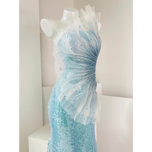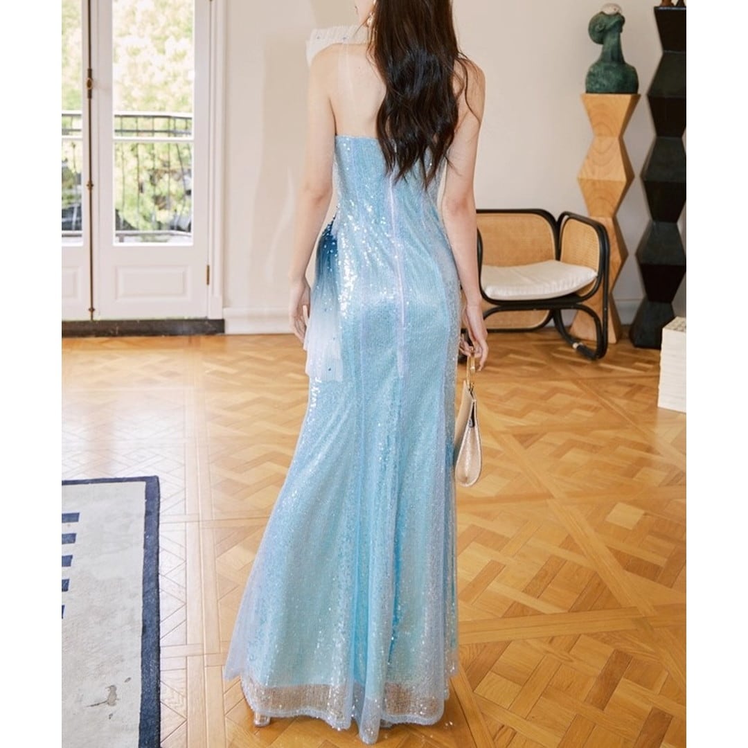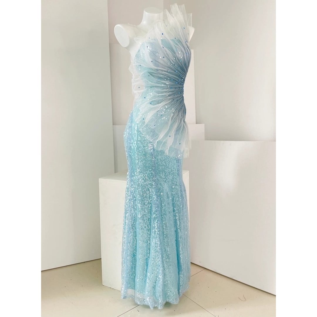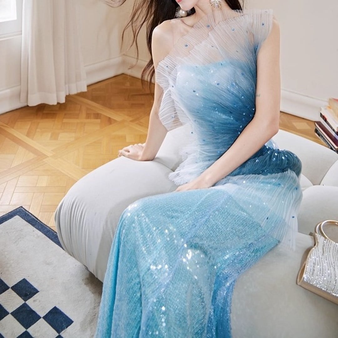 特別な夜にふさわしい、華やかな存在感を放つ一着。ワンショルダースタイルが、洗練された大人の魅力を引き出します。全体にあしらわれたスパンコールが、光を浴びるたびに美しく輝き、周囲の視線を惹きつけ、パーティーやイベントでの主役を演出。上品なシルエットは、スタイルを美しく見せ、自信に満ちた着こなしを叶えます。