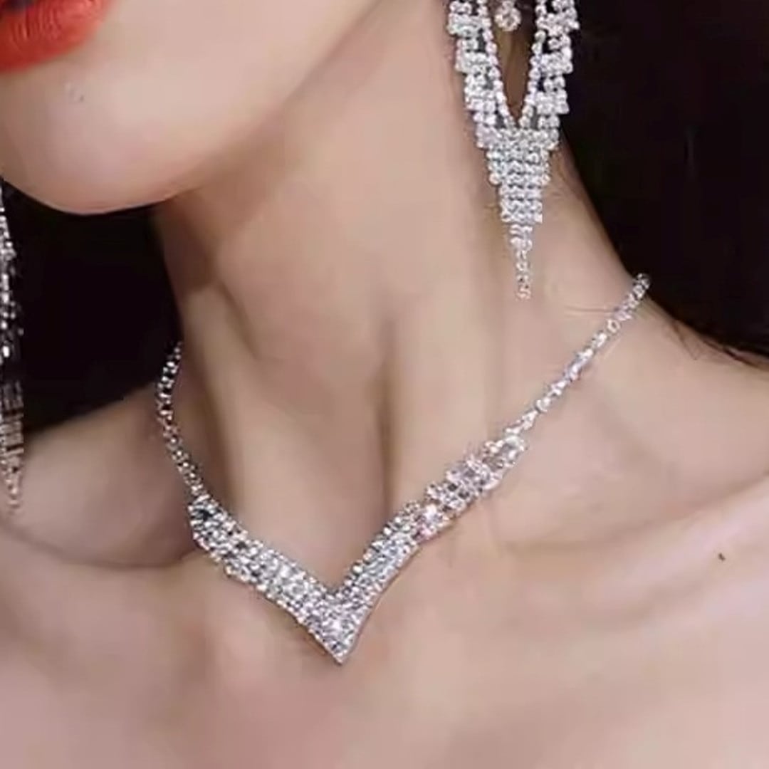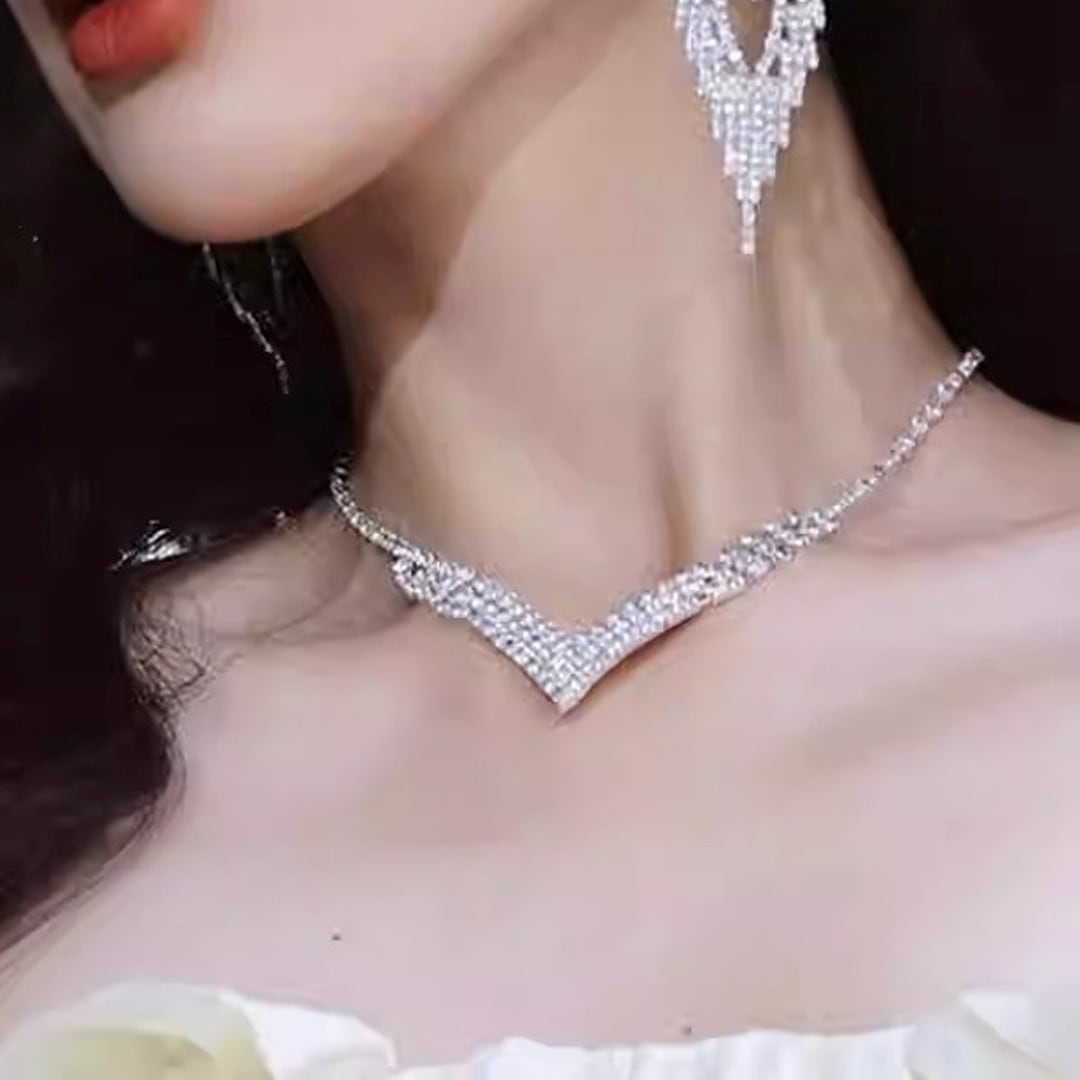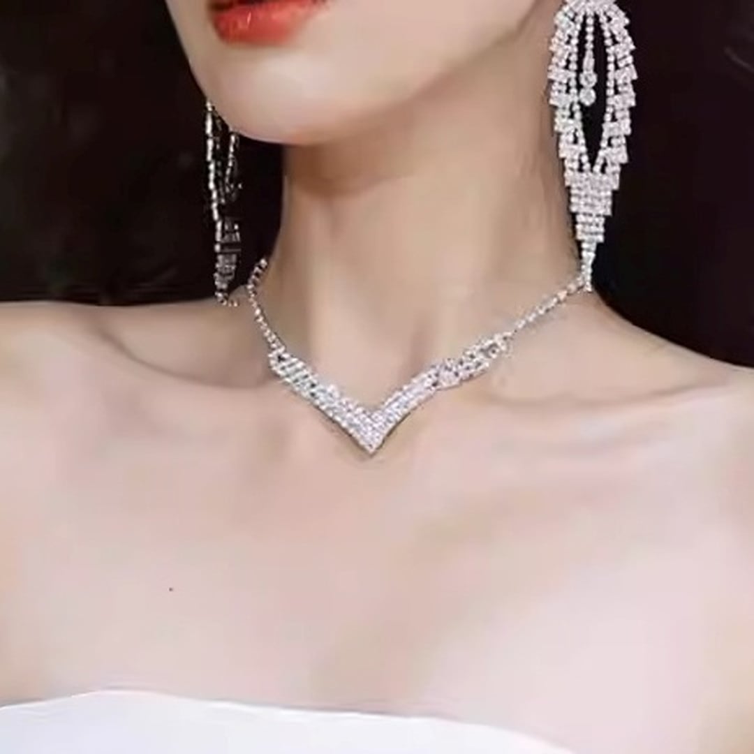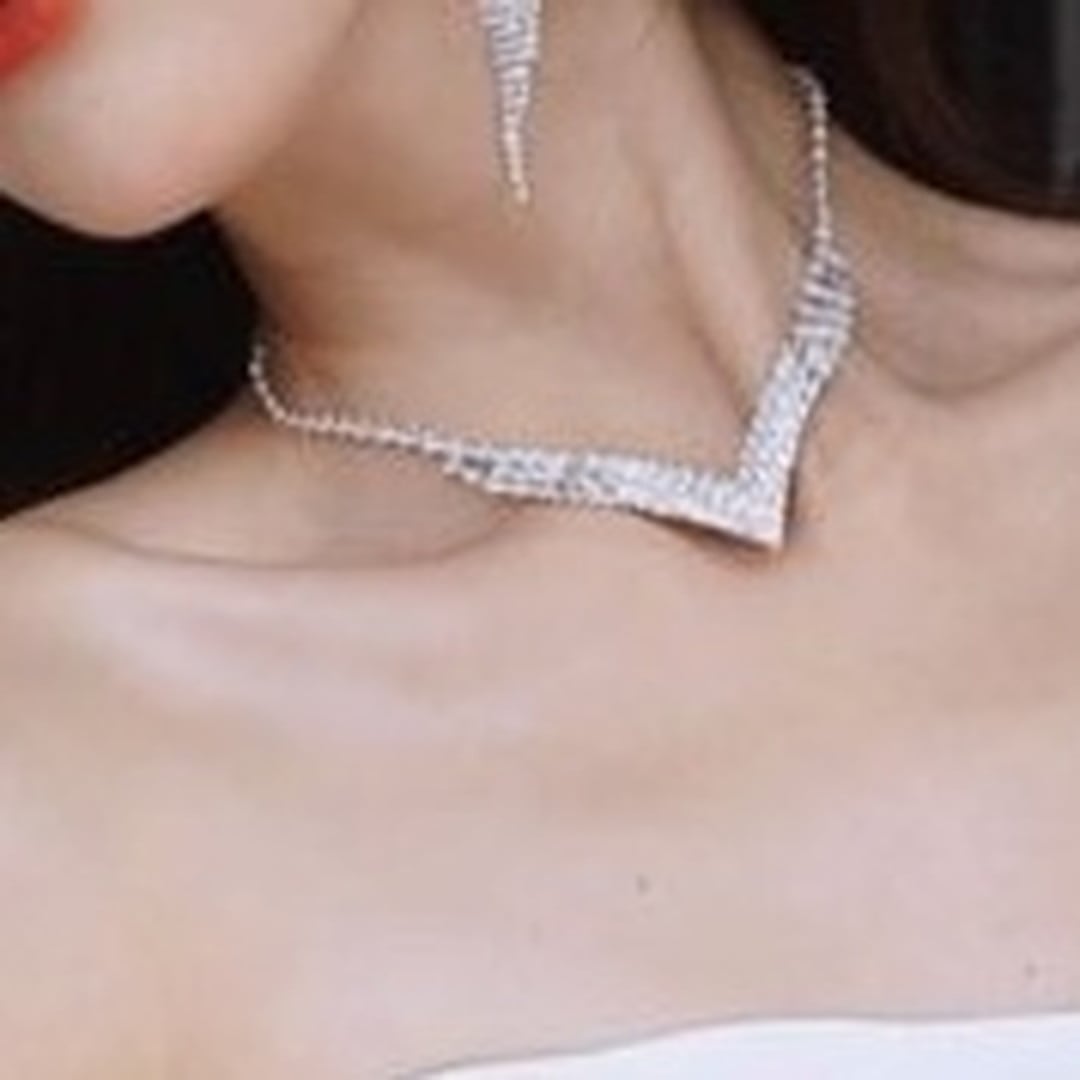 胸元を華やかに飾る、Y字型ネックレス。繊細なストーンが連なり、上品な輝きを放ちます。シンプルな装いにはもちろん、パーティーシーンなど華やかな場にもおすすめです。首元をすっきりと見せ、洗練された印象を与えます。