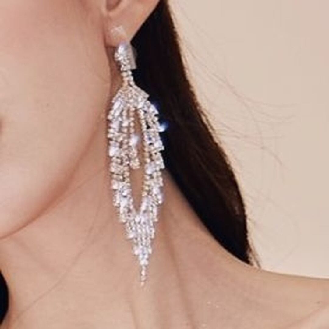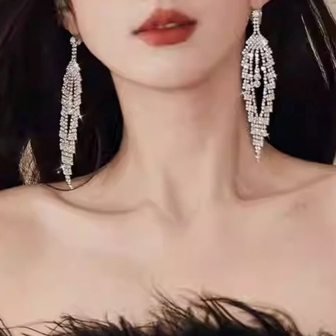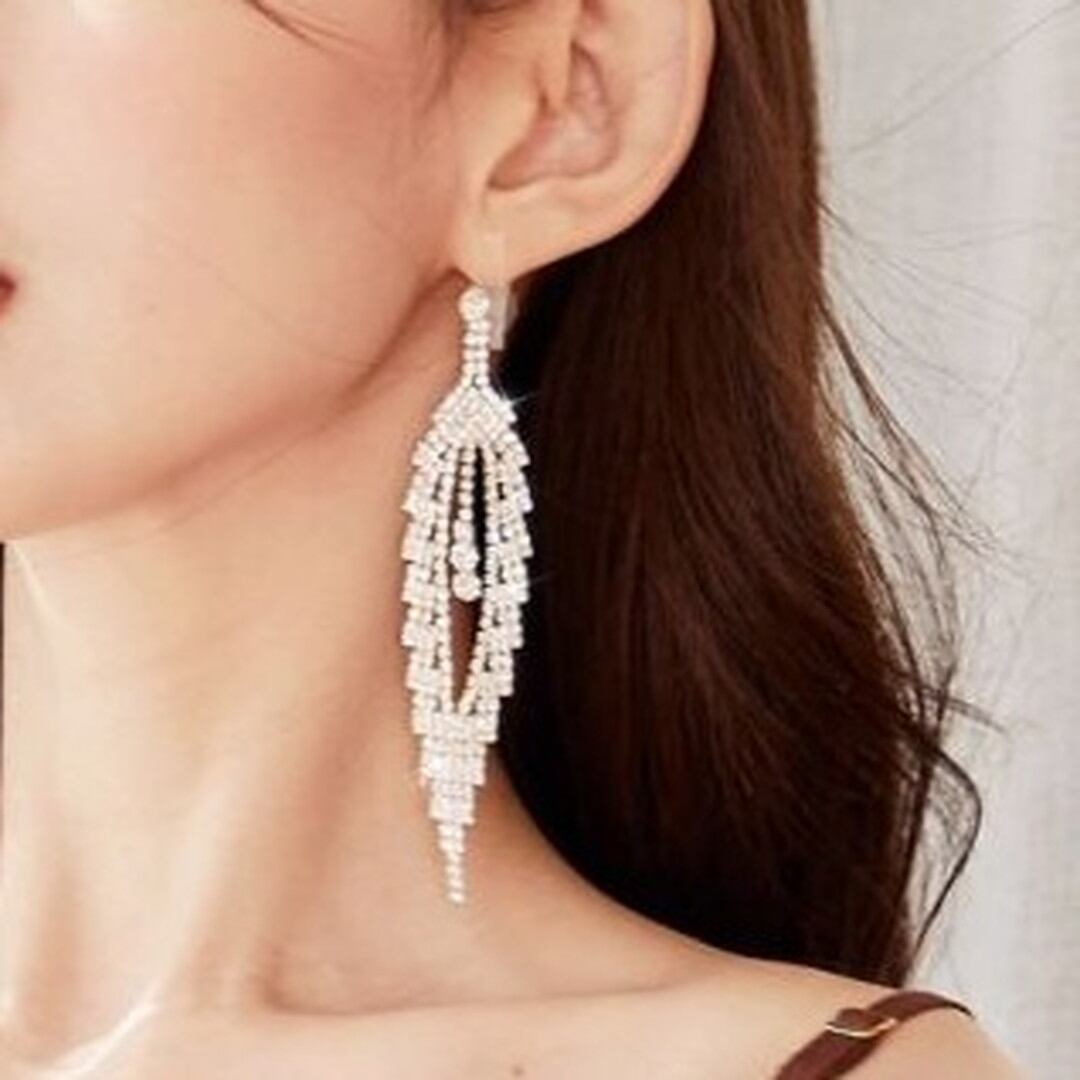 繊細な輝きを放つ、ドロップタイプのロングイヤリング。フェザーのようなデザインが、顔周りを華やかに彩ります。パーティーシーンはもちろん、普段使いにもアクセントとして取り入れやすいアイテムです。動くたびに優雅に揺れ、視線を捉えて、より一層美しさを引き立てます。
