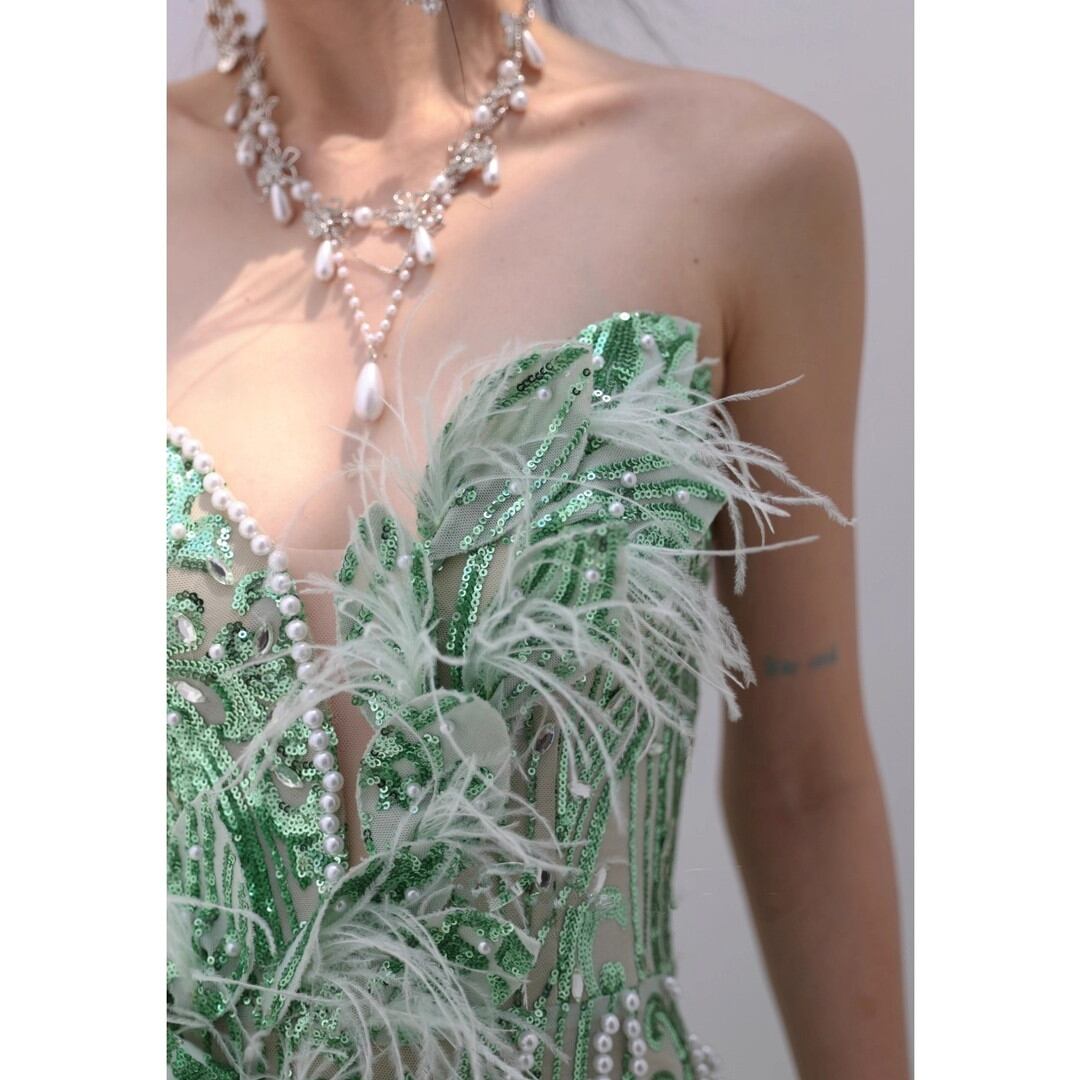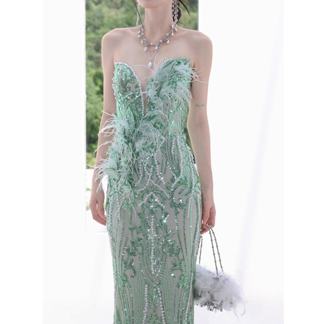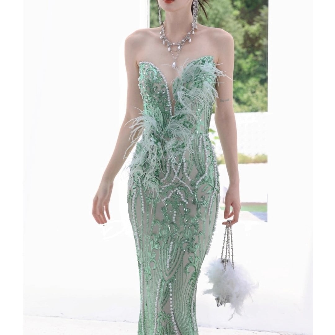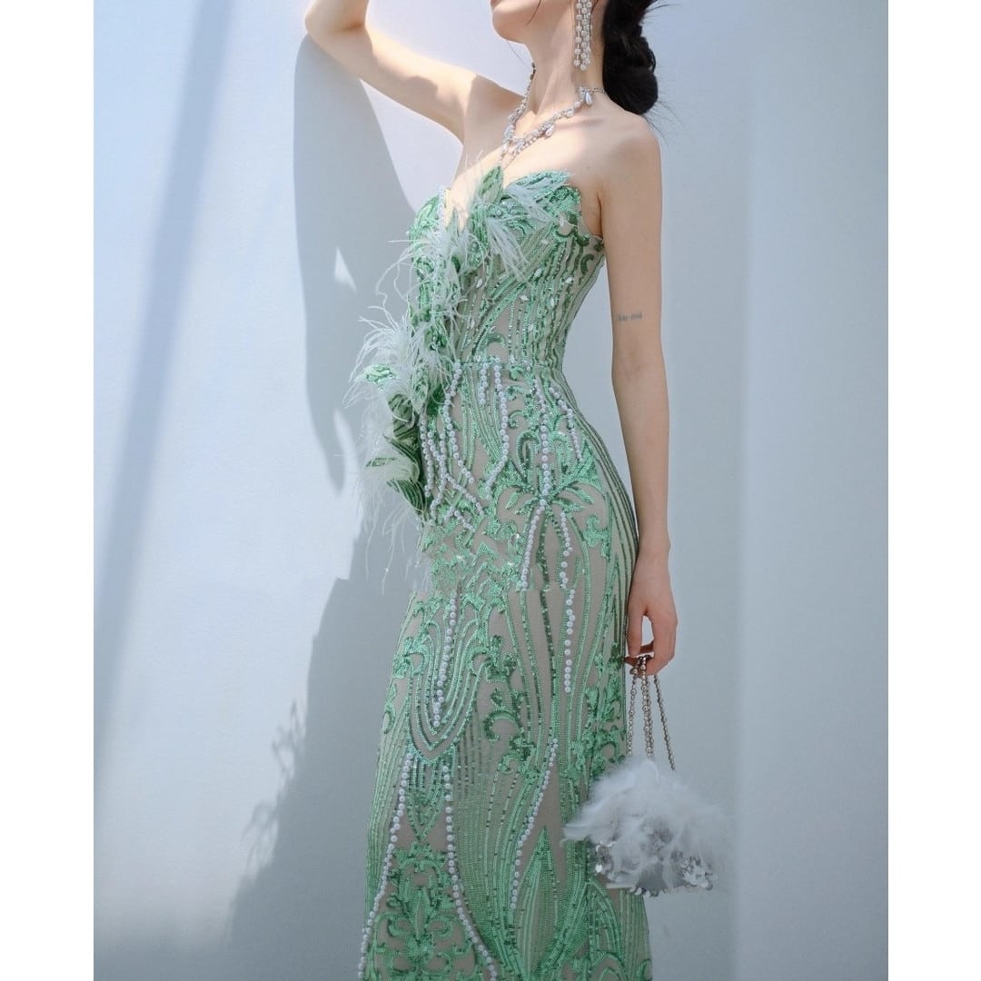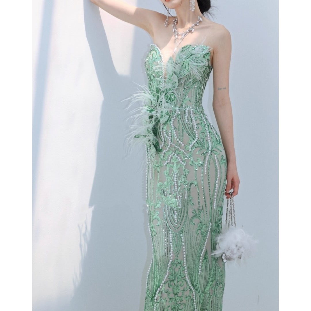特別な日にふさわしい、華やかなロングドレス。スリムなシルエットで、あなたのボディラインを美しく引き立てます。パーティーやイベントなど、人とは違う印象を与えたい時に最適です。