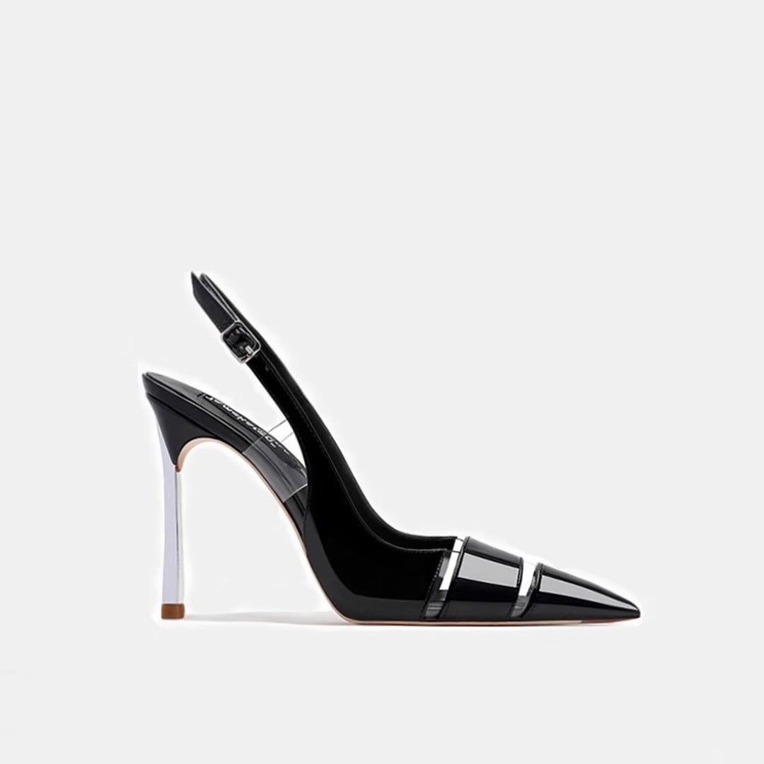 ポインテッドトゥとピンヒールの組み合わせが、洗練された印象を与えるサンダル。 ストラップが足元をしっかりとホールドし、安定感のある履き心地を実現します。 パーティーシーンはもちろん、オフィススタイルにも合わせやすい一足です。