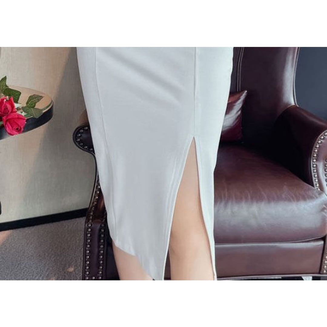 Ribbon Long Sleeve Midi Slit Dress(2color) V3120