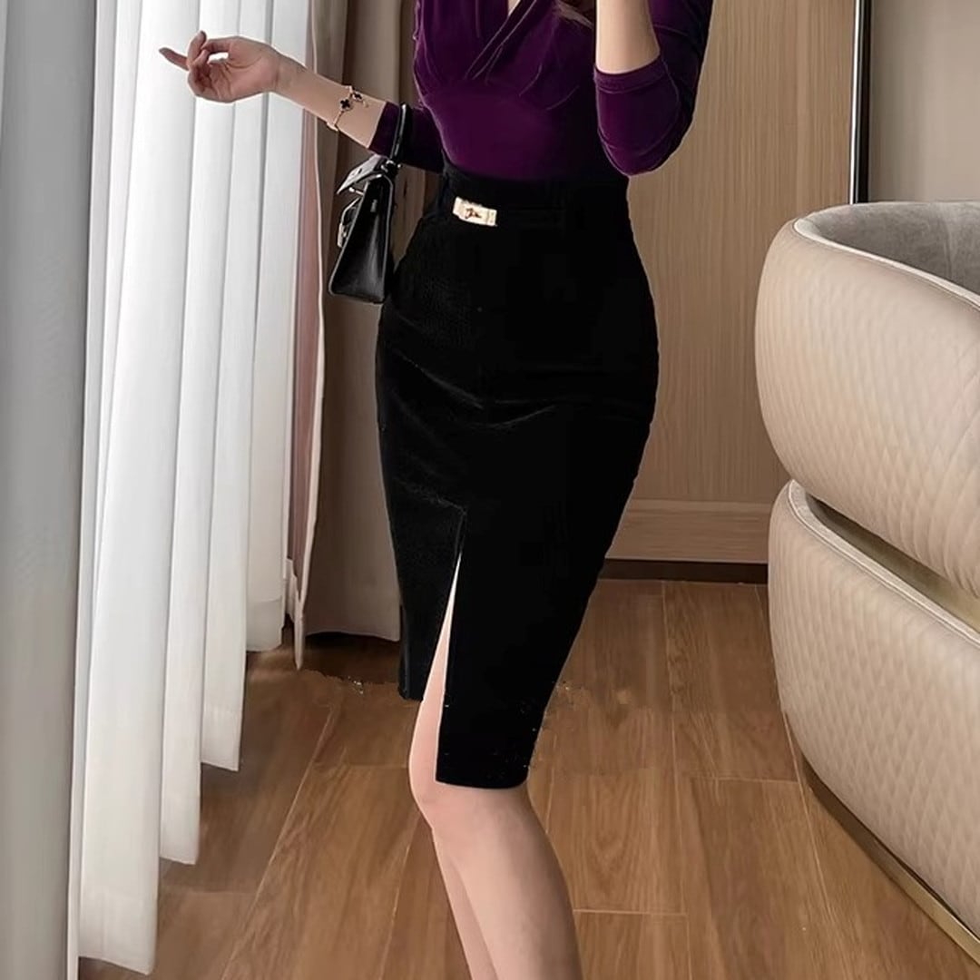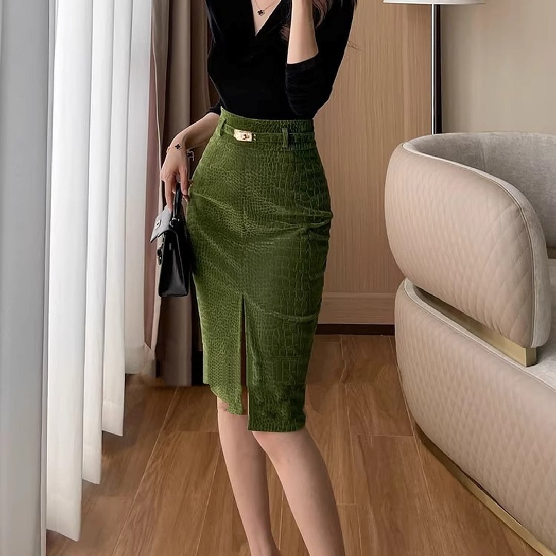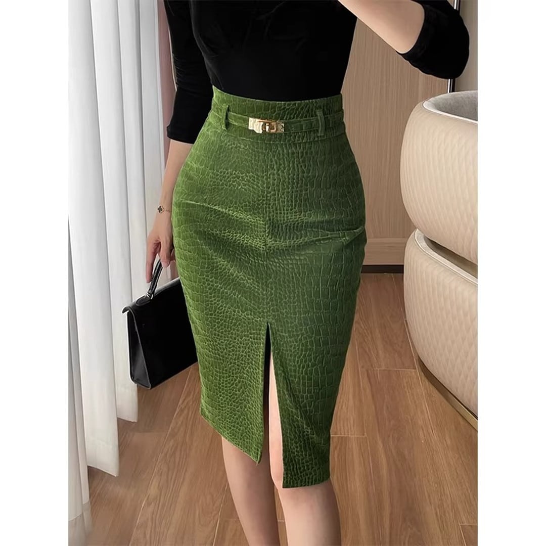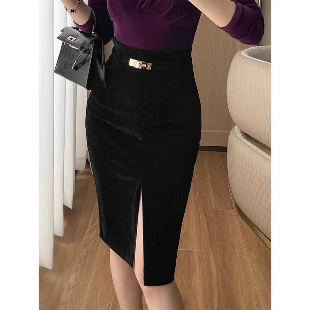 Belted Midi Length Slit Tight Skirt(2color) V3133