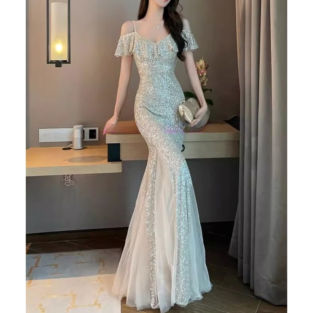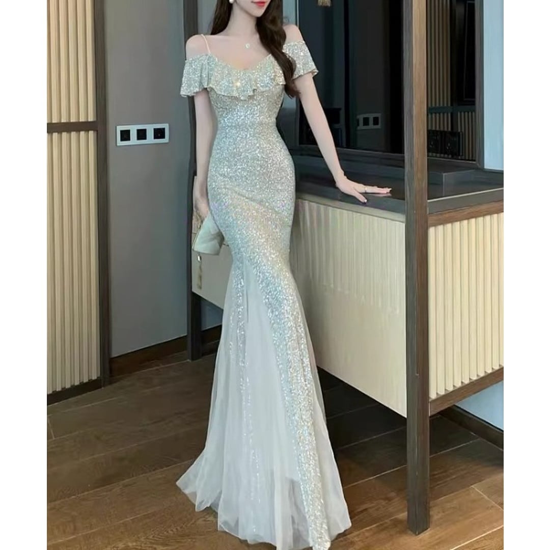 Off-shoulder Mermaid Long Dress(2color) V3146