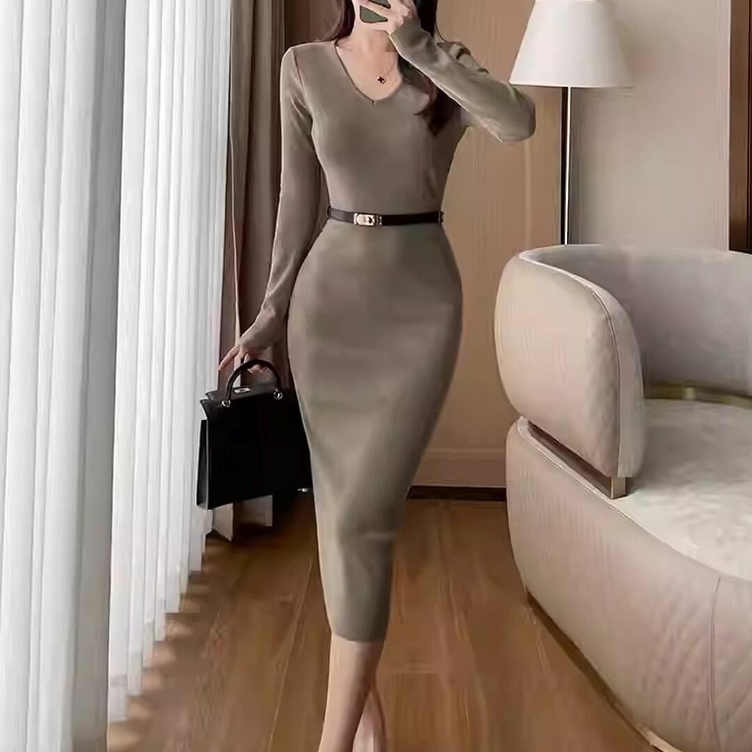 上品なシルエットを演出するミディ丈のニットドレス。長袖デザインで、これからの季節に活躍します。付属のベルトでウエストマークすれば、スタイルアップ効果も期待できます。オフィスやお出かけなど、様々なシーンで活躍する一枚です。