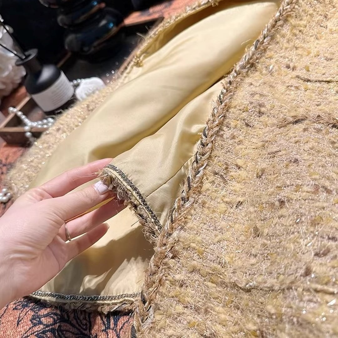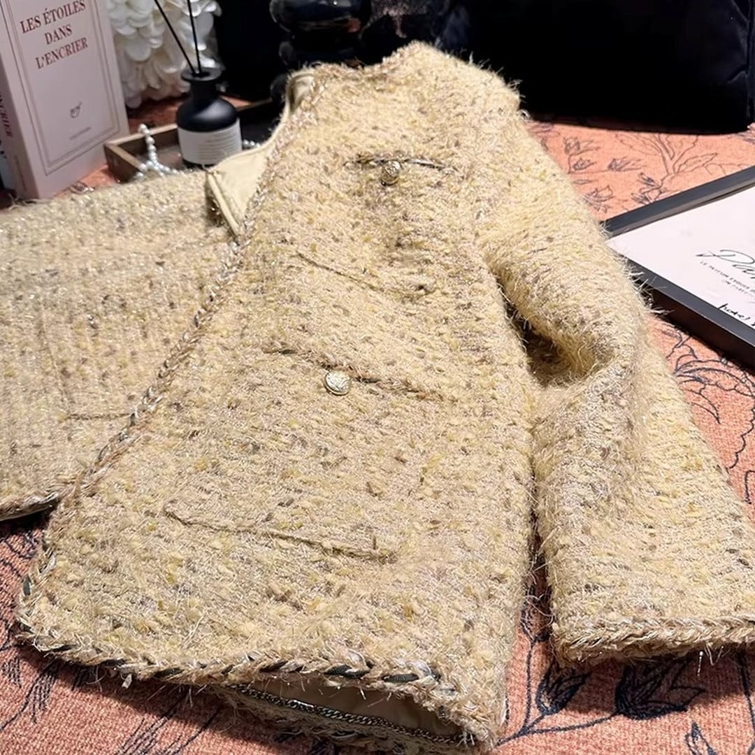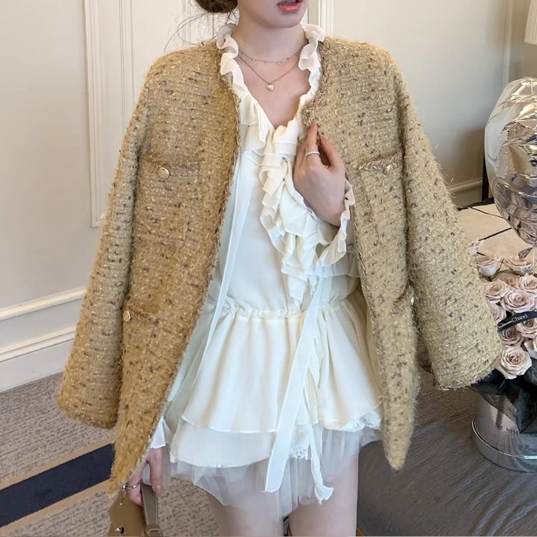 ノーカラーデザインが特徴的なヒップ丈長袖ジャケットです。