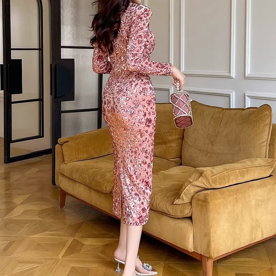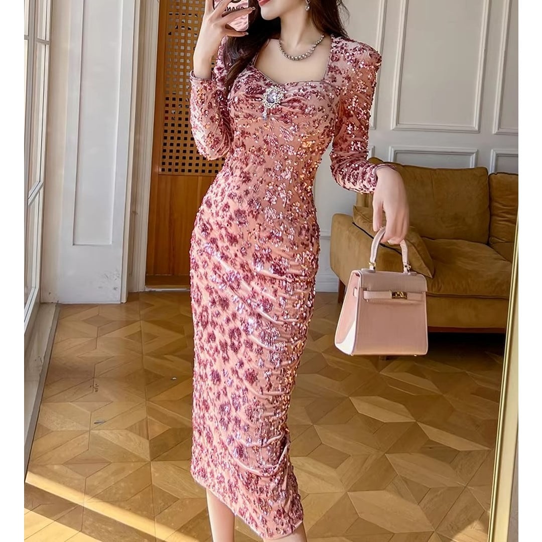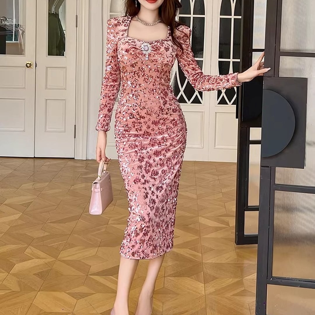 ミディ丈のボディコンドレスは、あなたの優雅さを引き立てます。長袖のデザインは、季節を問わず着用でき、パーティーや特別なイベントに最適です。洗練されたシルエットで、自信に満ちたあなたを演出します。