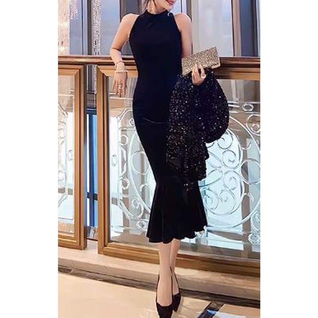 Sleeveless Mermaid Midi Dress V3213