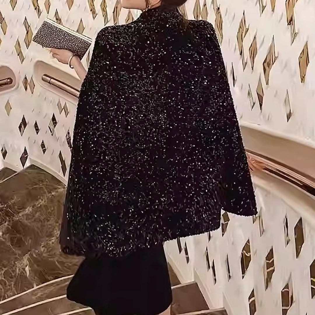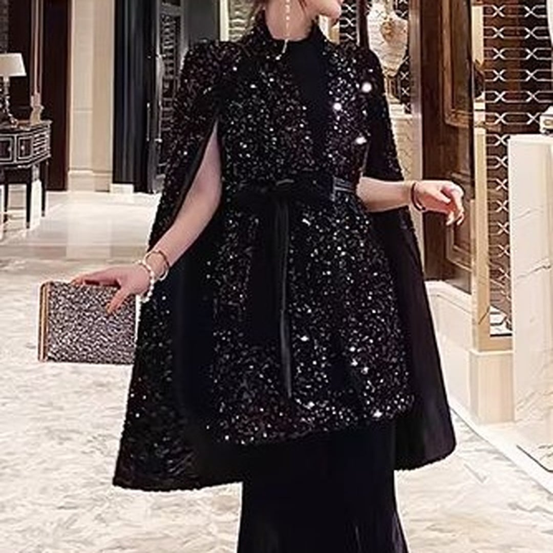 Belted Sequin Cape Jacket V3214