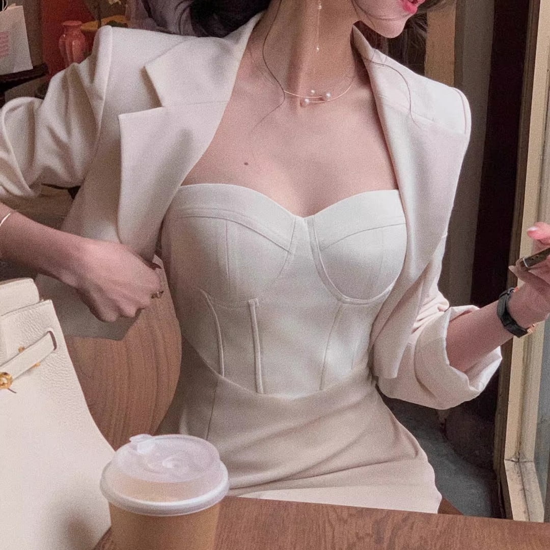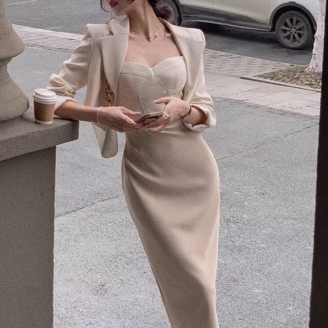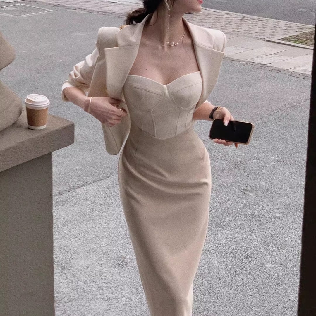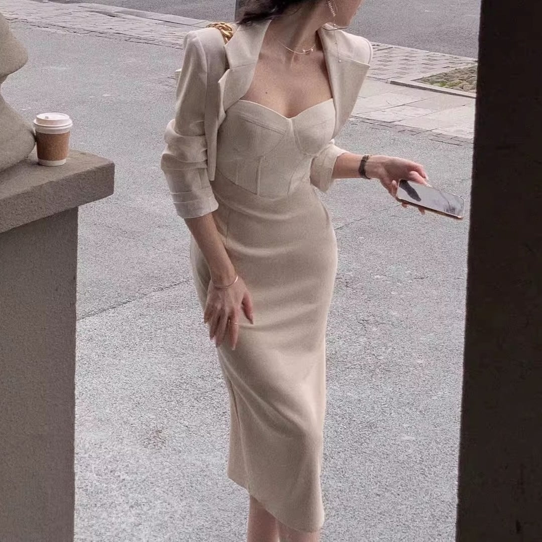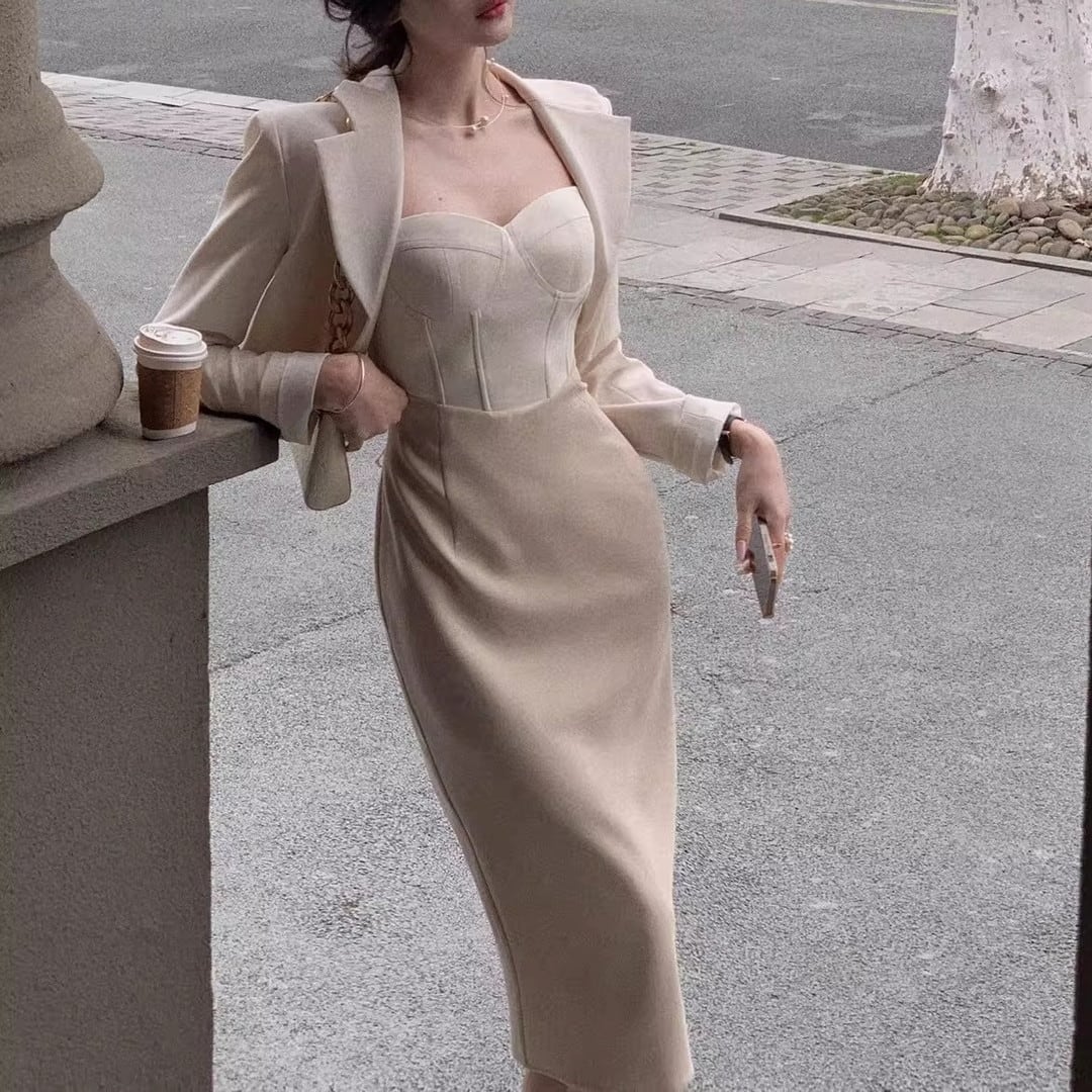 Midi Length Jacket Dress Setup V3219