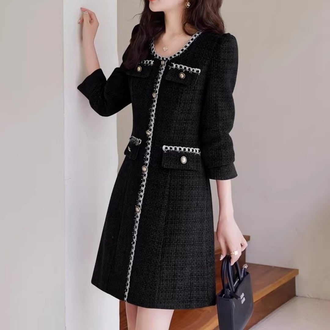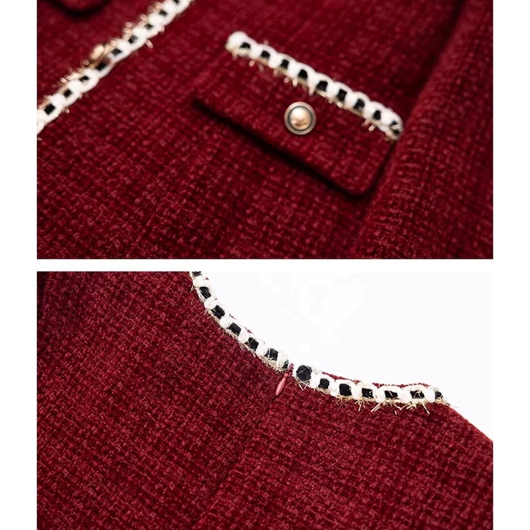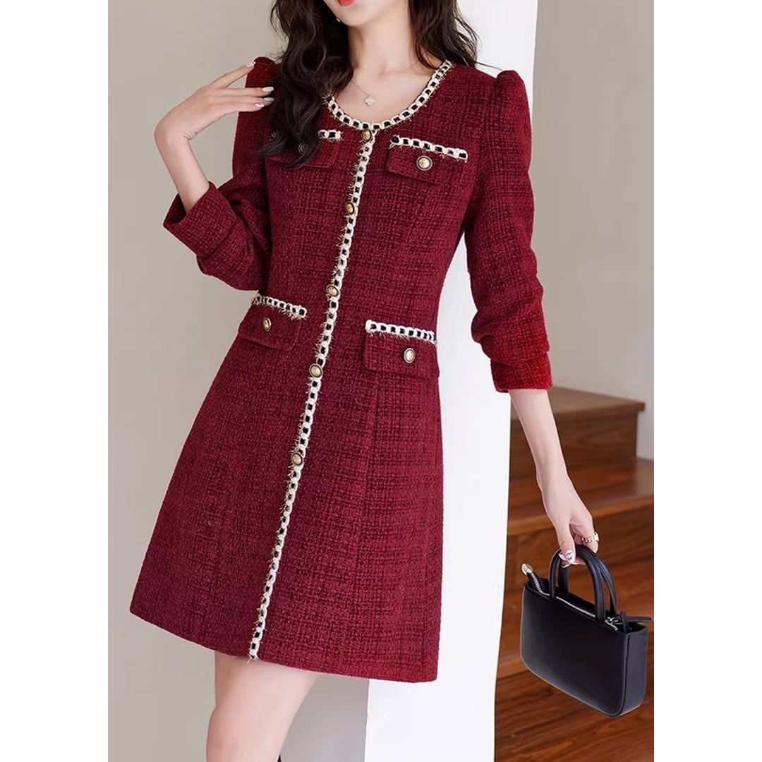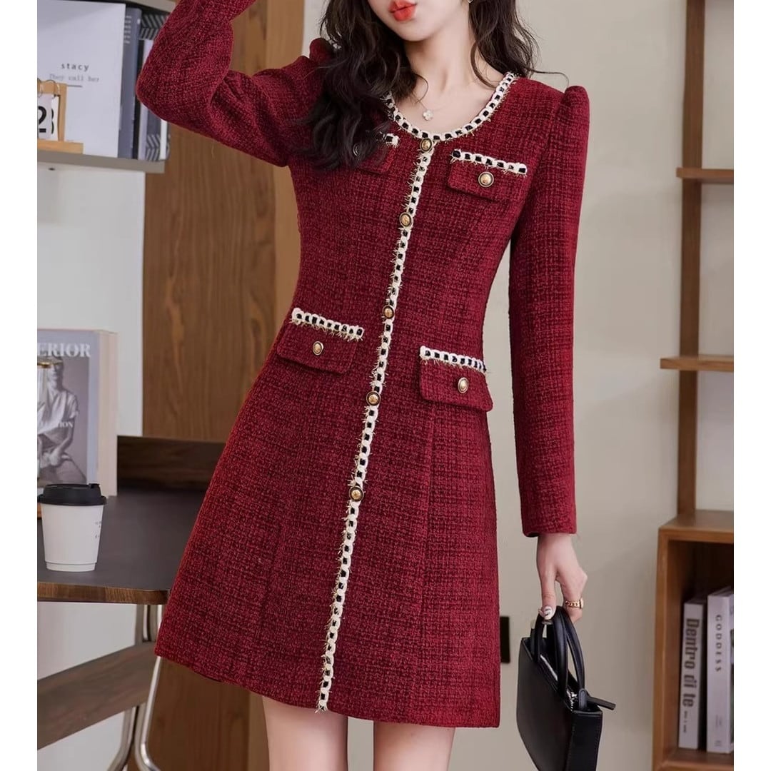 上品な印象を与えるミニ丈の長袖ワンピース。フロントボタンとツイード調のデザインが特徴です。ちょっとしたお出かけや、普段使いにもおすすめです。アクセサリーやバッグを合わせることで、さらに華やかな印象になります。
