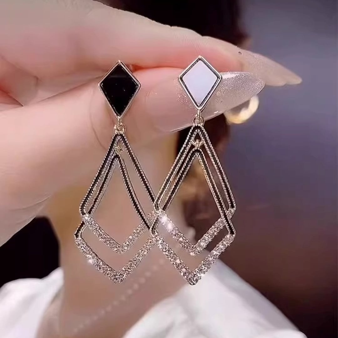 Diamond Frame Drop Earrings V3252