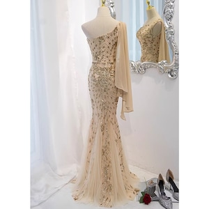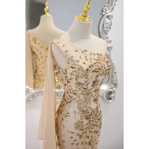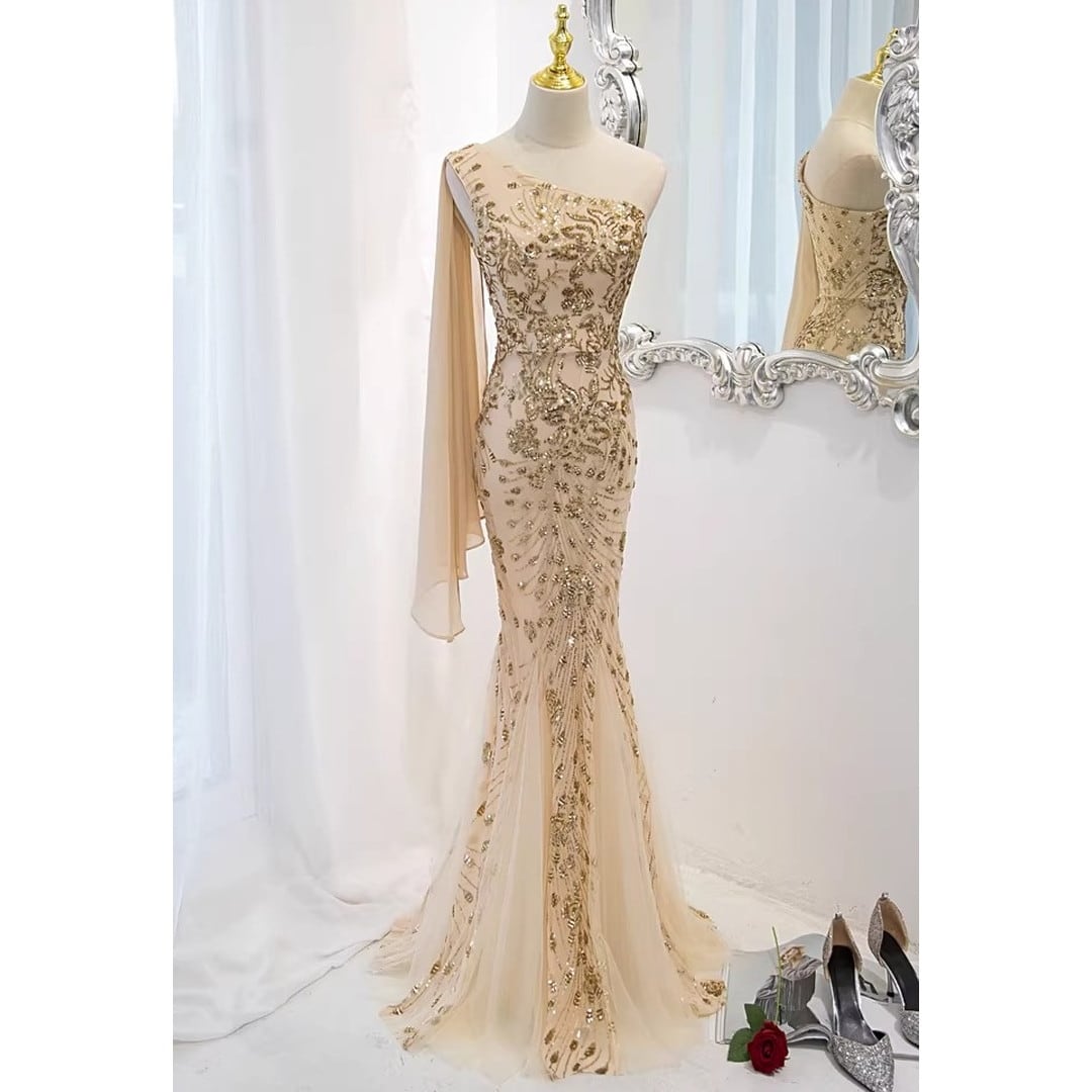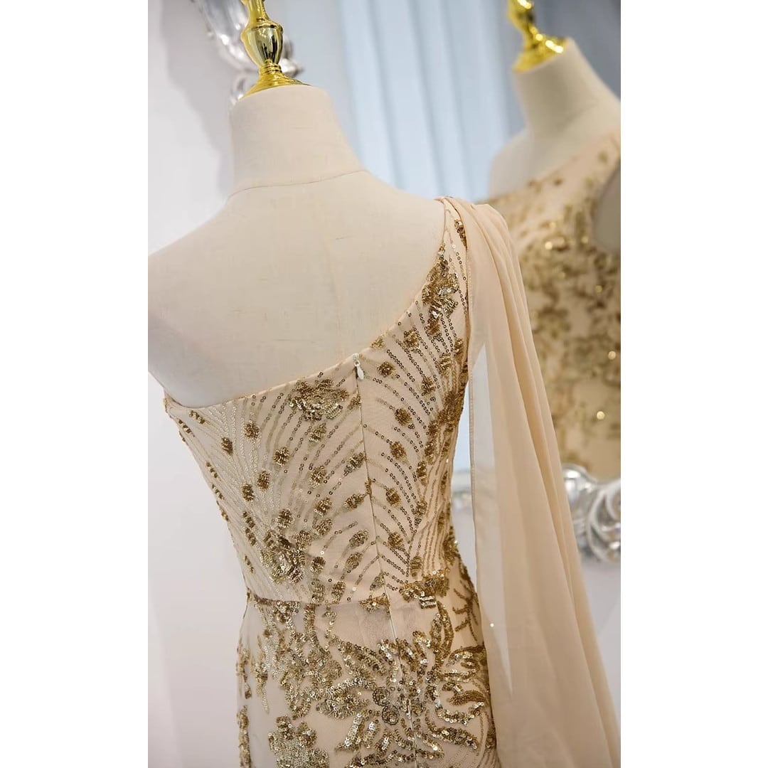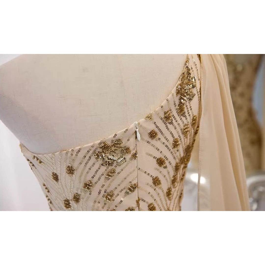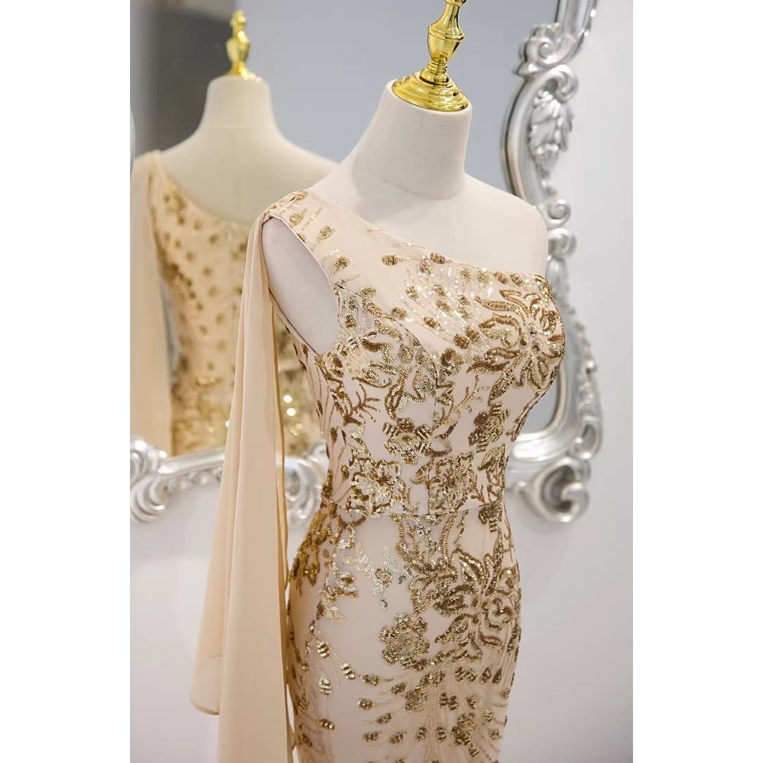 特別な夜にふさわしい、華やかな装いを演出するミディドレス。ワンショルダーのデザインが、さりげない個性をプラスし、優雅な雰囲気を引き立てます。全体に施された繊細なスパンコールの装飾が、光を受けて輝き、パーティーシーンでひときわ目を引く存在感を発揮します。特別な日のディナーやパーティーなど、華やかなシーンにおすすめの一着です。