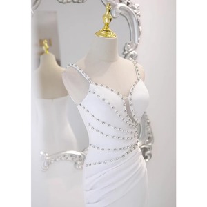 スリットから覗く素肌が、洗練された大人の魅力を引き出すマーメイドロングドレス。