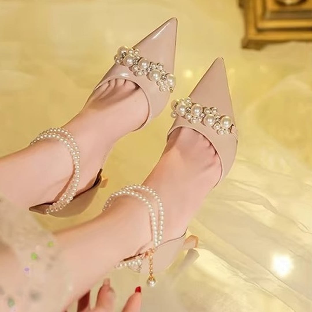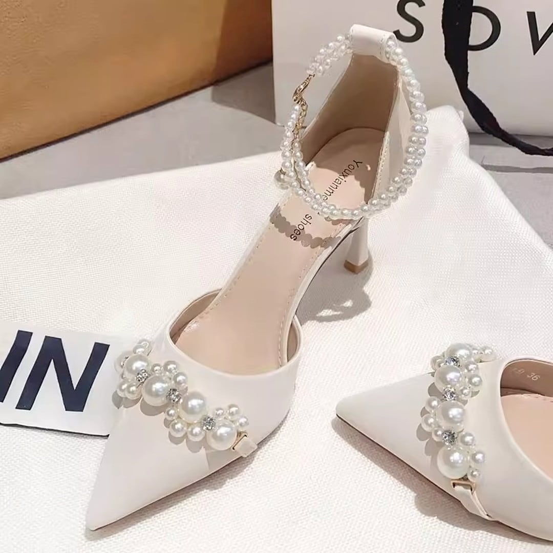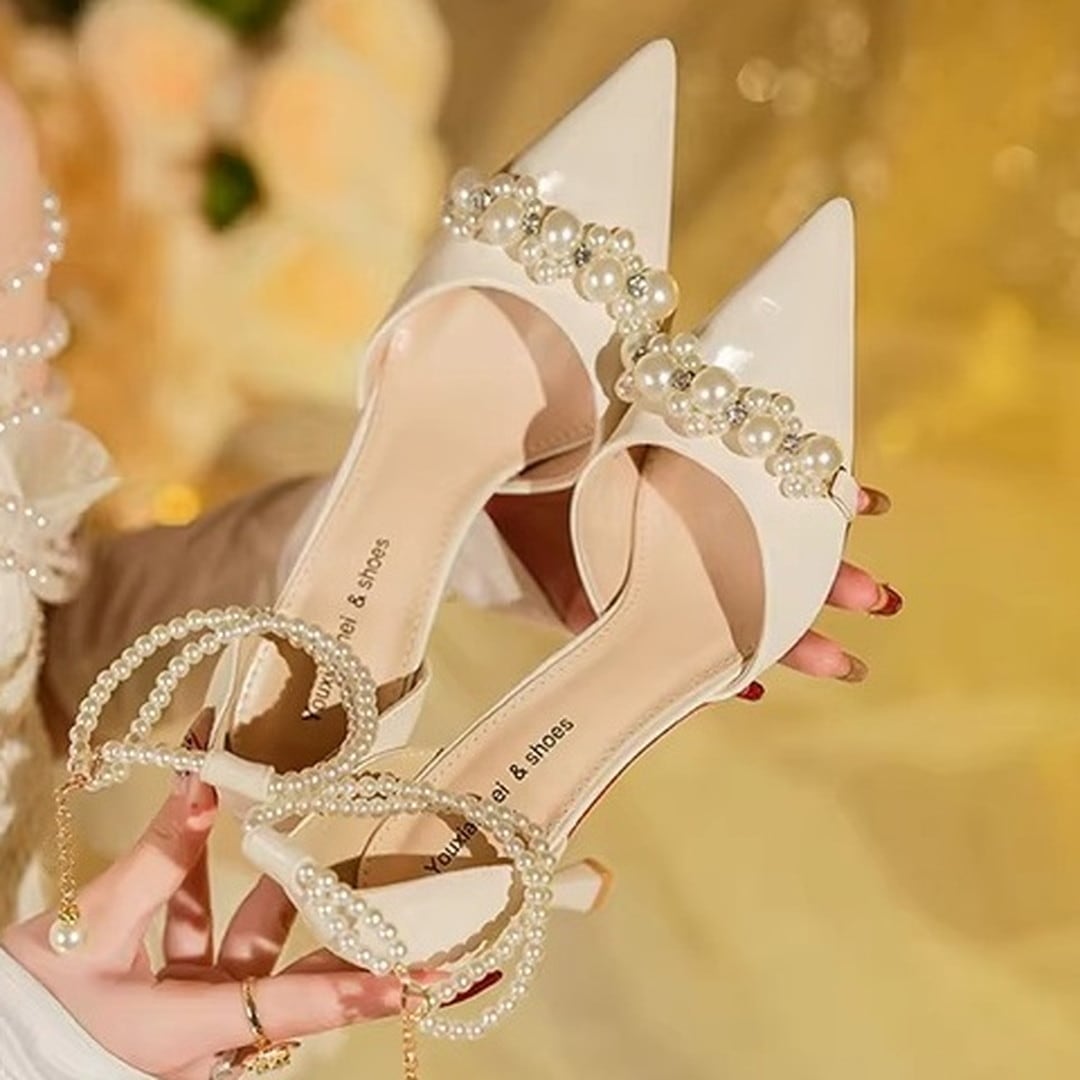 strap pearl pointed-toe pumps(3color) V3267