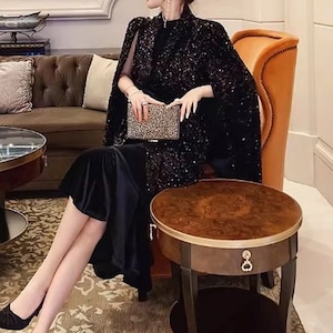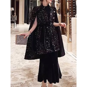 Sequin Midi Cape Dress Setup V3269