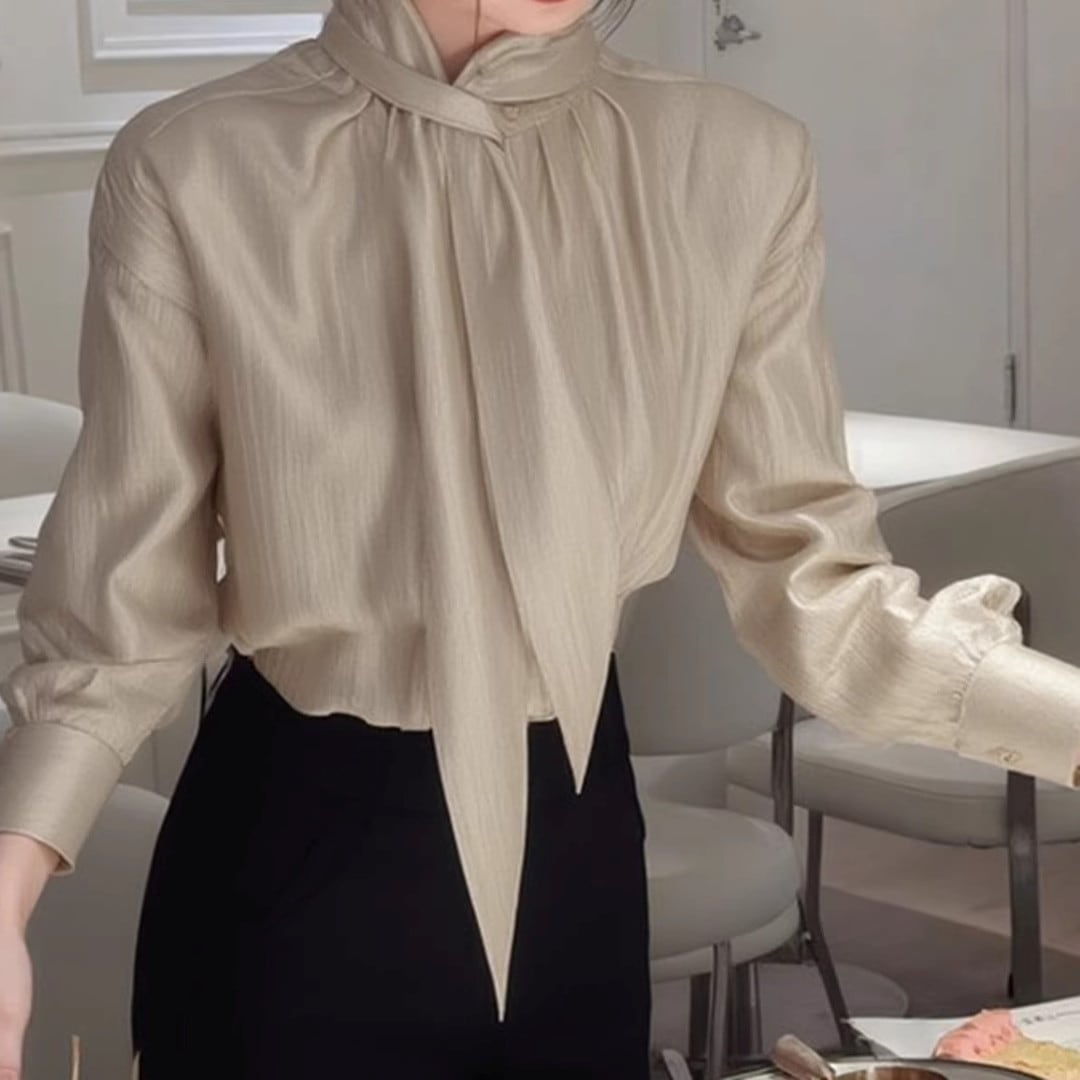 Bow Tie Long Sleeve Blouse V2184