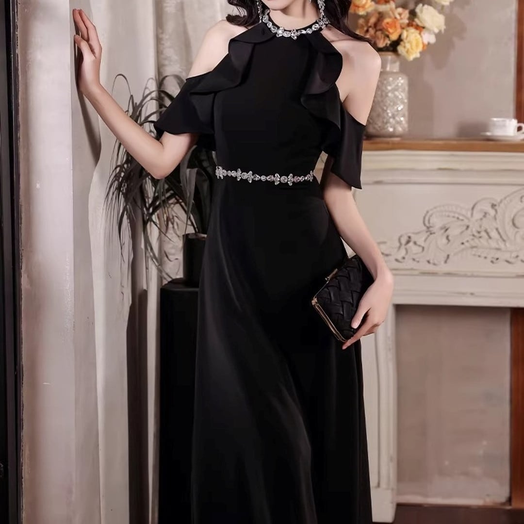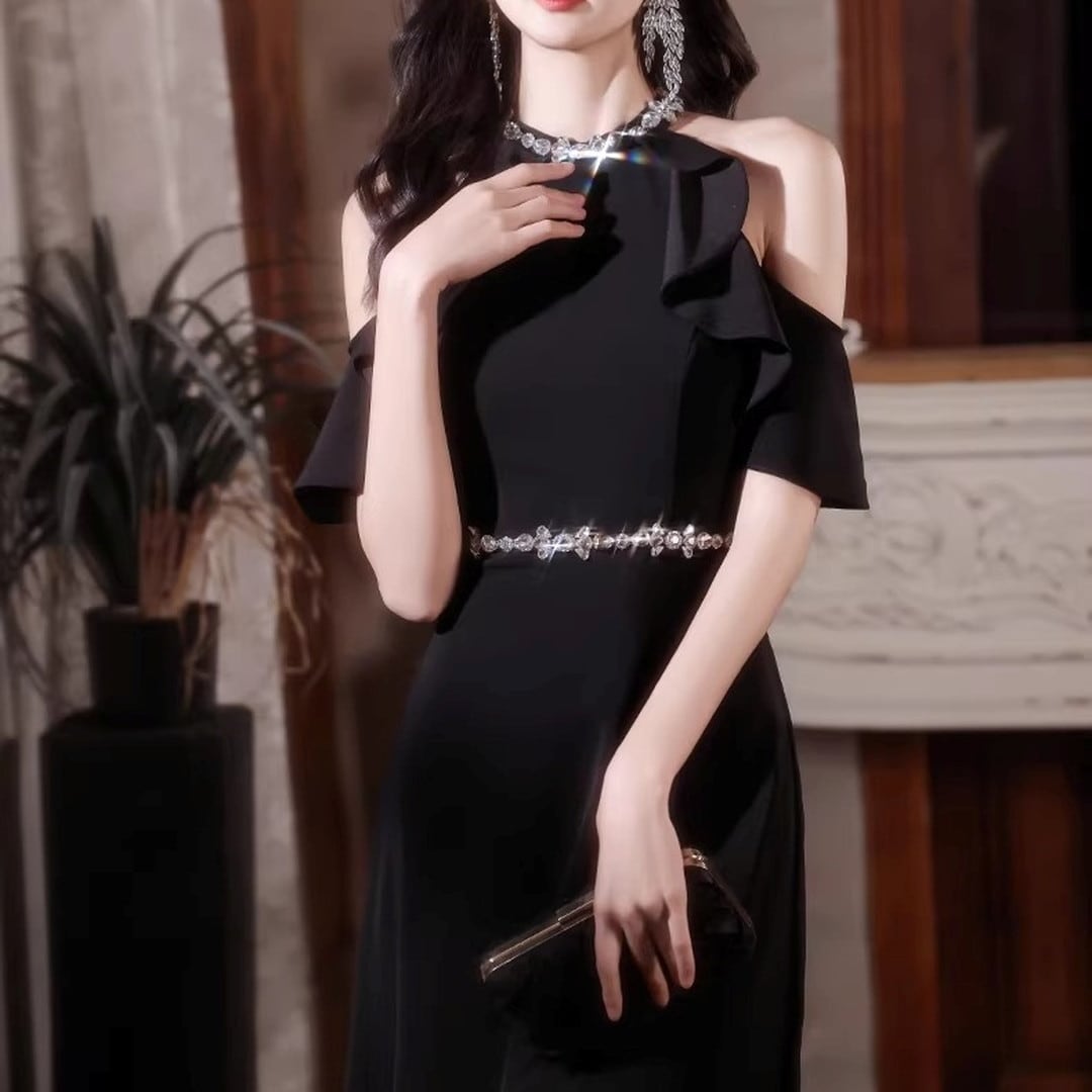 都会的な洗練さを演出するミディ丈ドレス。ホルターネックのデザインが、肩のラインを美しく見せ、上品な印象を与えます。付属のベルトでウエストマークすれば、スタイルアップ効果も期待できます。パーティーシーンはもちろん、特別なディナーにもおすすめです。
