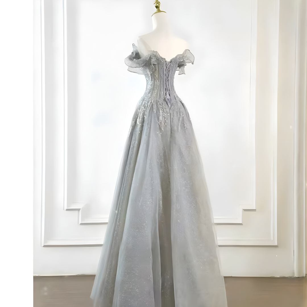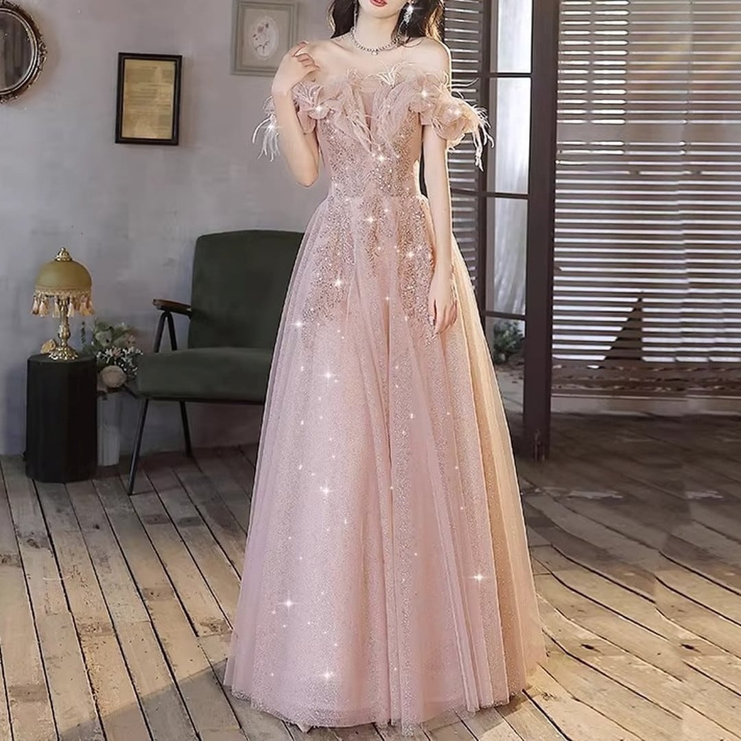 特別な日にふさわしい、華やかでエレガントなマキシドレス。オフショルダーのデザインが、デコルテを美しく演出し、女性らしさを引き立てます。フリル使いが上品さをプラス。パーティーや特別なイベントで、周囲の視線を惹きつけることでしょう。