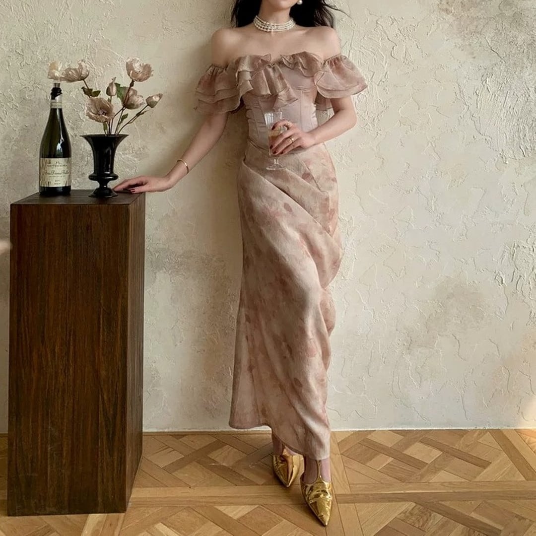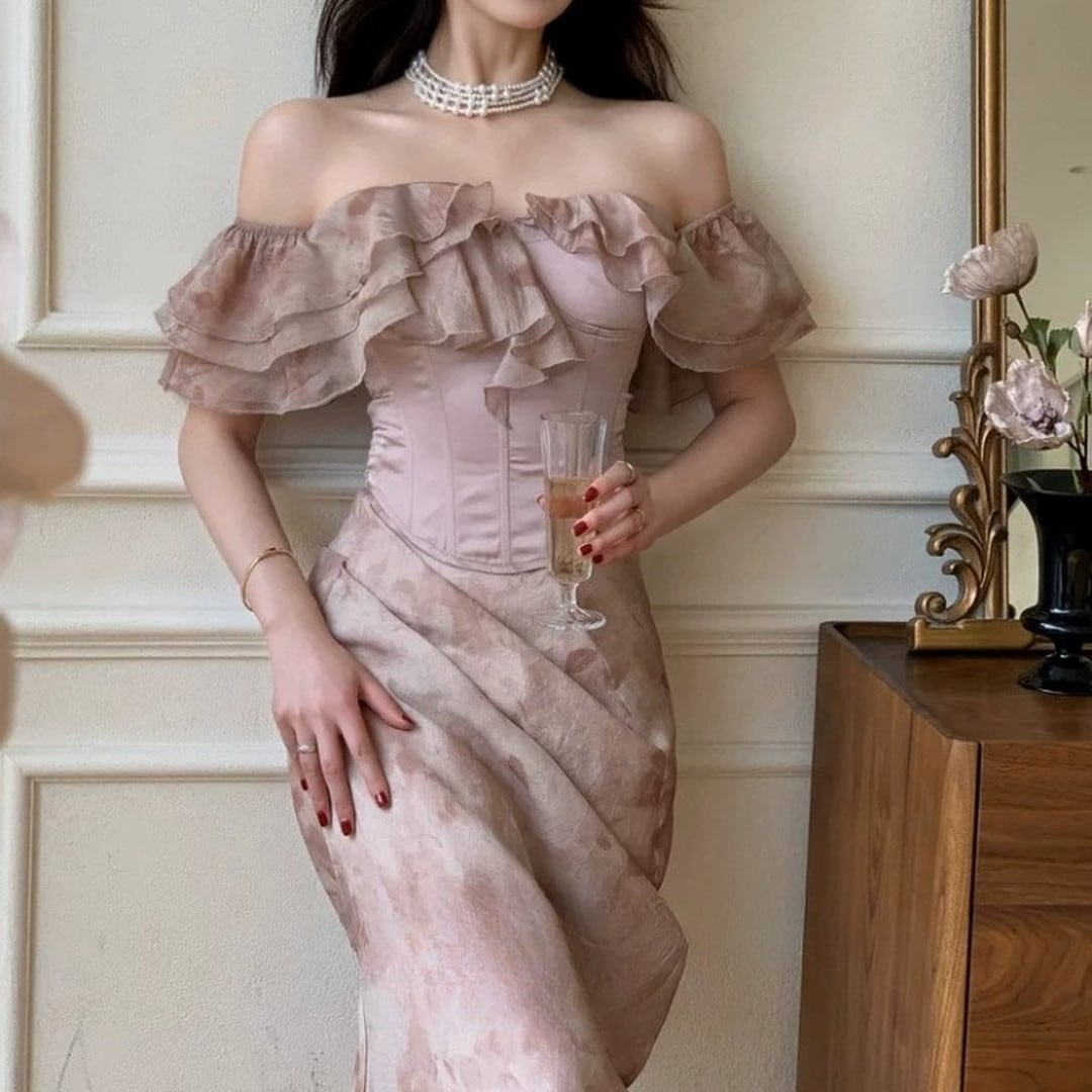 Frill Off-Shoulder Midi Dress(2color) V3331