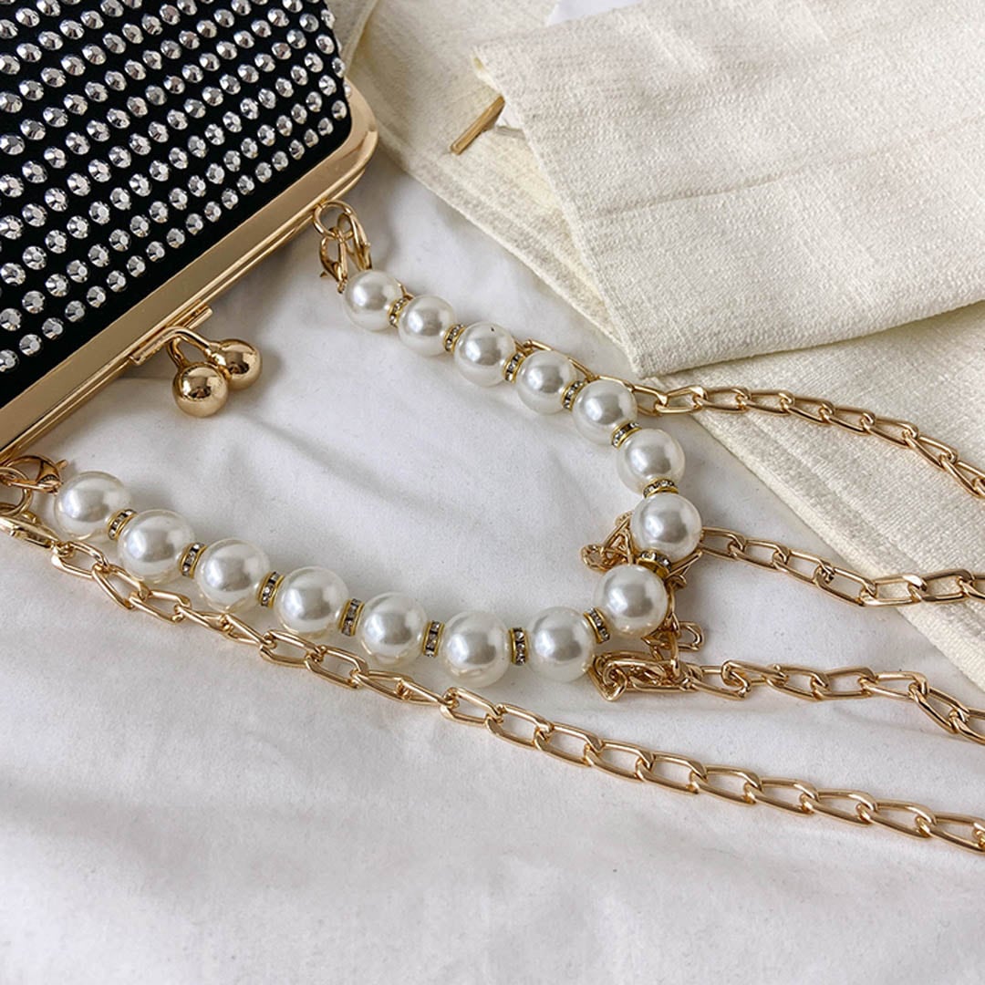 2WAY Pearl Chain Rhinestone Bag(2color) V876